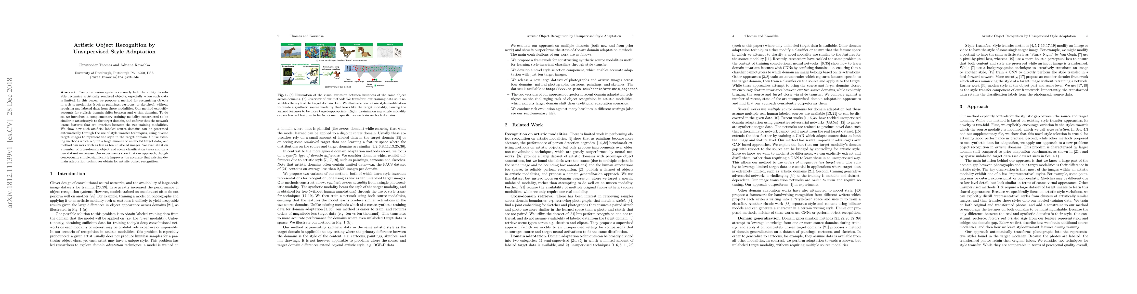A new method for recognizing objects in artistic images without labeled data is proposed, using a complementary training modality to account for stylistic domain shifts.