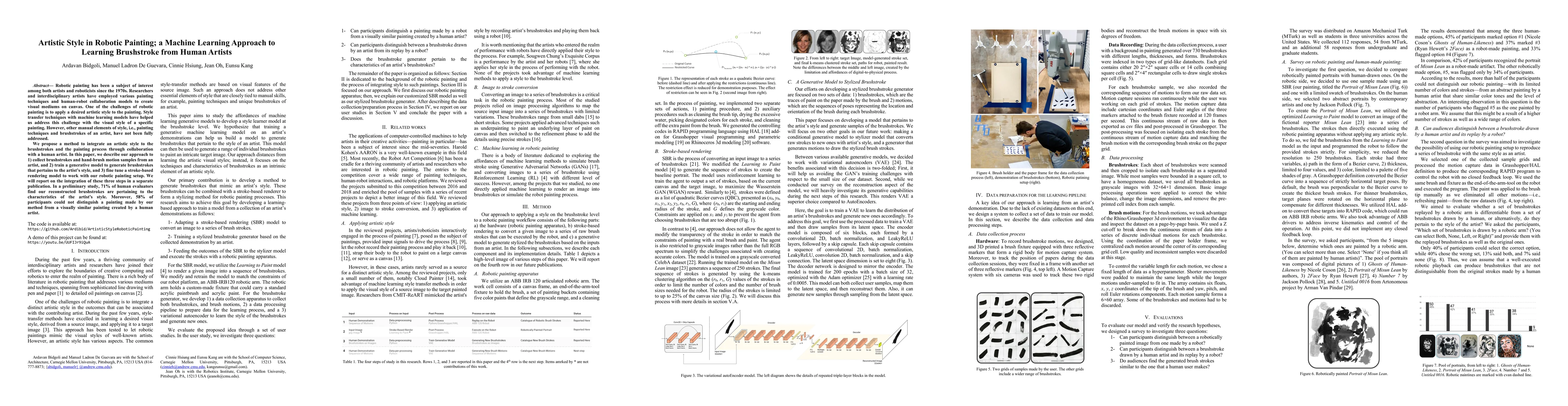 Robotic painting has been a subject of interest among both artists and roboticists since the 1970s. Researchers and interdisciplinary artists have employed various painting techniques and human-robot collaboration models to create visual mediums on canvas. One of the challenges of robotic painting is to apply a desired artistic style to the painting. Style transfer techniques with machine learning models have helped us address this challenge with the visual style of a specific painting. However, other manual elements of style, i.e., painting techniques and brushstrokes of an artist, have not been fully addressed. We propose a method to integrate an artistic style to the brushstrokes and the painting process through collaboration with a human artist. In this paper, we describe our approach to 1) collect brushstrokes and hand-brush motion samples from an artist, and 2) train a generative model to generate brushstrokes that pertains to the artist's style, and 3) fine tune a stroke-based rendering model to work with our robotic painting setup. We will report on the integration of these three steps in a separate publication. In a preliminary study, 71% of human evaluators find our reconstructed brushstrokes are pertaining to the characteristics of the artist's style. Moreover, 58% of participants could not distinguish a painting made by our method from a visually similar painting created by a human artist.