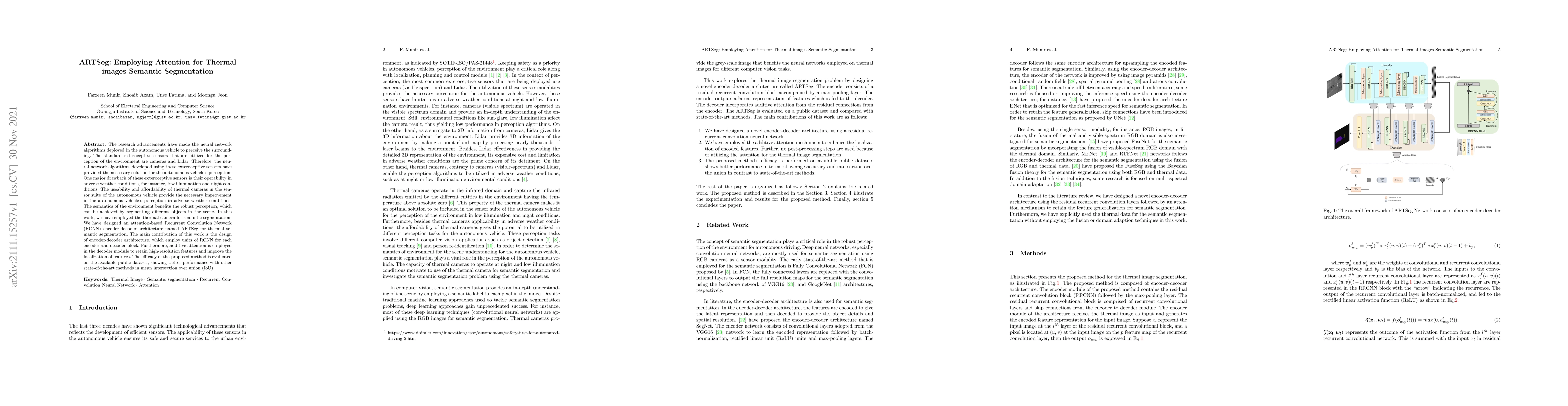 This paper introduces ARTSeg, a thermal camera-based semantic segmentation method for autonomous vehicles that improves perception in adverse weather conditions using attention mechanisms.