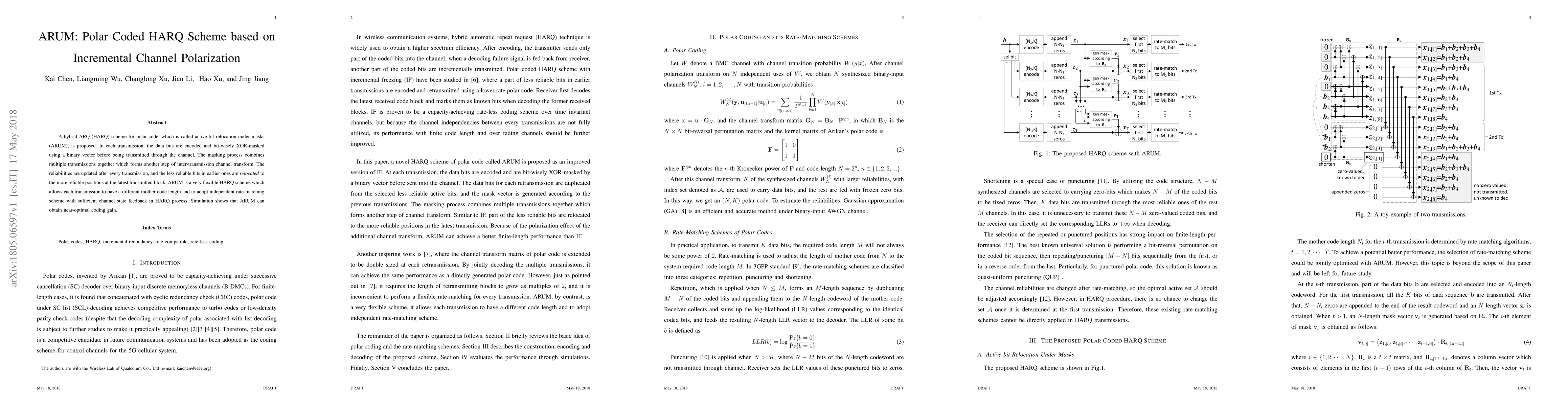 The paper proposes ARUM, a hybrid ARQ scheme for polar codes that uses active-bit relocation under masks to combine multiple transmissions, improving reliability through incremental channel polarization. ARUM achieves near-optimal coding gain and offers flexibility in code length and rate-matching.