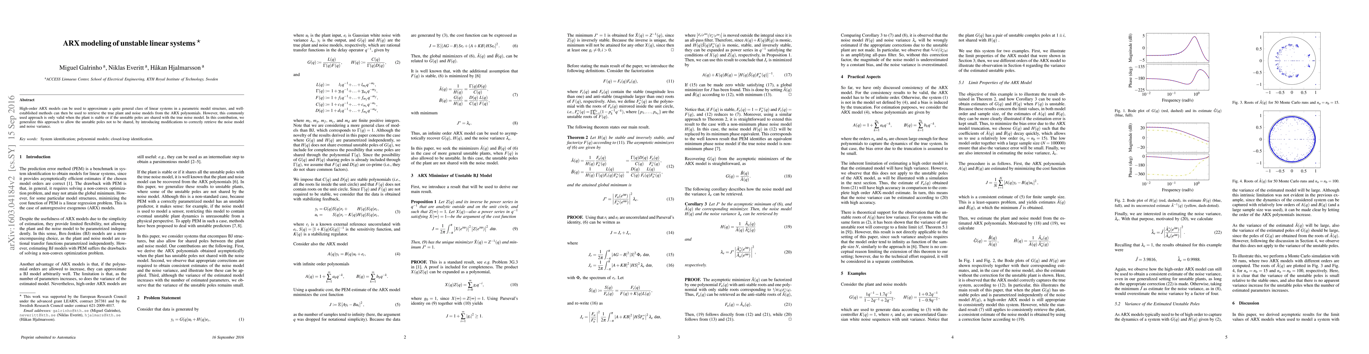 Researchers developed a new method to create accurate ARX models for unstable linear systems, allowing for more general applications without the need for stable poles or shared noise models.
