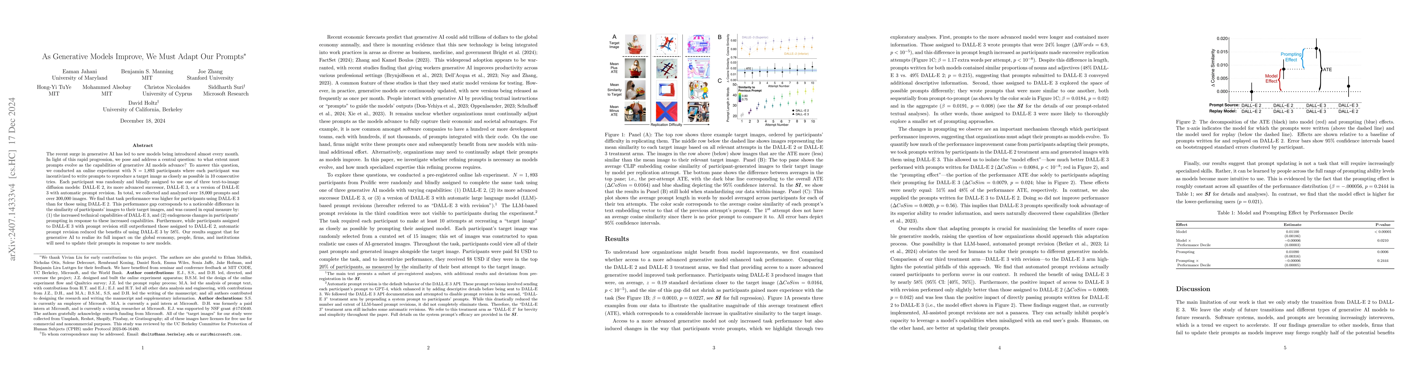 The recent surge in generative AI has led to new models being introduced almost every month. In light of this rapid progression, we pose and address a central question: to what extent must prompts evolve as the capabilities of generative AI models advance? To answer this question, we conducted an online experiment with N = 1,893 participants where each participant was incentivized to write prompts to reproduce a target image as closely as possible in 10 consecutive tries. Each participant was randomly and blindly assigned to use one of three text-to-image diffusion models: DALL-E 2, its more advanced successor, DALL-E 3, or a version of DALL-E 3 with automatic prompt revision. In total, we collected and analyzed over 18,000 prompts and over 300,000 images. We find that task performance was higher for participants using DALL-E 3 than for those using DALL-E 2. This performance gap corresponds to a noticeable difference in the similarity of participants' images to their target images, and was caused in equal measure by: (1) the increased technical capabilities of DALL-E 3, and (2) endogenous changes in participants' prompting in response to these increased capabilities. Furthermore, while participants assigned to DALL-E 3 with prompt revision still outperformed those assigned to DALL-E 2, automatic prompt revision reduced the benefits of using DALL-E 3 by 58\%. Our results suggest that for generative AI to realize its full impact on the global economy, people, firms, and institutions will need to update their prompts in response to new models. Not doing so could leave more than half of the potential benefits of these AI systems untapped.