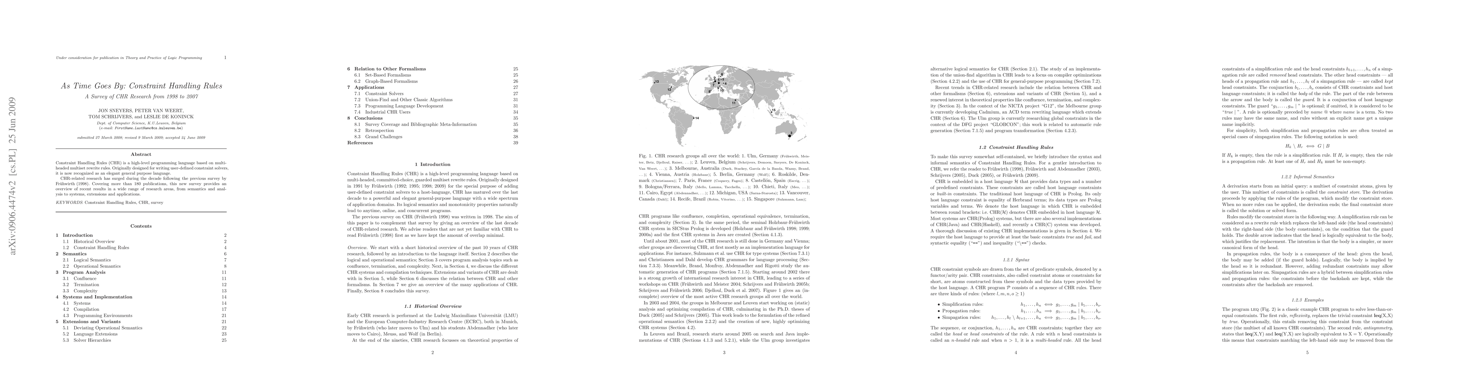 This paper surveys Constraint Handling Rules (CHR) research from 1998 to 2007, highlighting its evolution from a constraint solver language to a general-purpose programming language, and reviewing developments in semantics, analysis, systems, extensions, and applications.