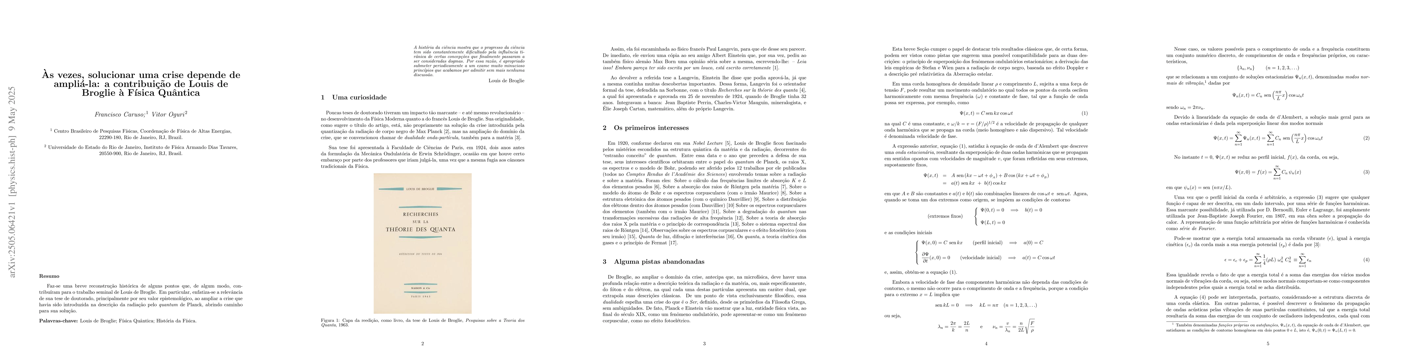 This paper reconstructs Louis de Broglie's contributions to quantum physics, highlighting his doctoral thesis as a key step in resolving the crisis introduced by Planck's quantum theory.