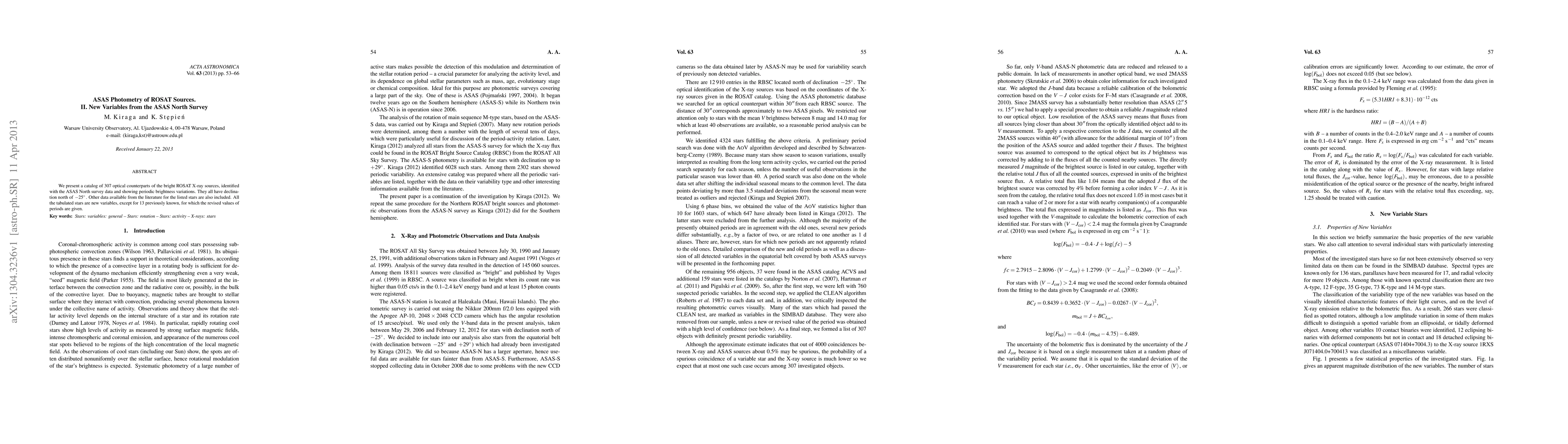 This paper catalogs 307 new variable stars identified through ASAS North survey data, corresponding to bright ROSAT X-ray sources with declination north of -25 degrees. It also provides updated period values for 13 previously known variables.