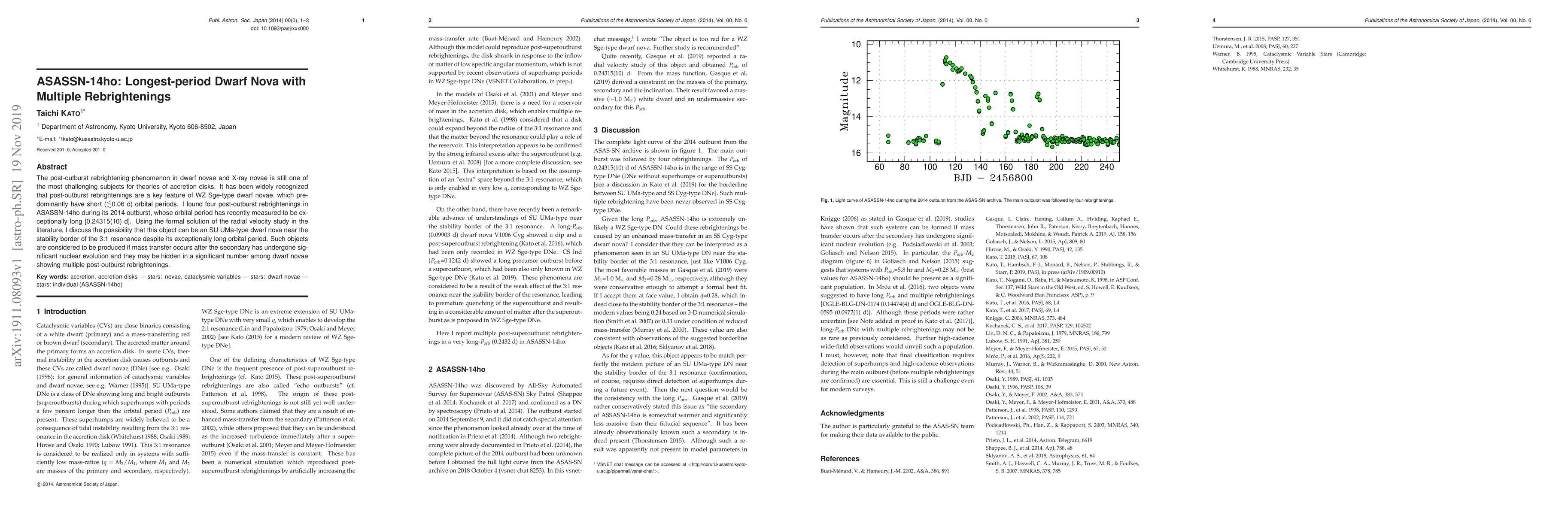 This paper investigates ASASSN-14ho, a dwarf nova with an unusually long orbital period, which exhibited four post-outburst rebrightenings. The study suggests it may be an SU UMa-type dwarf nova near the stability border of the 3:1 resonance, indicating that such objects could be more common than previously thought.
