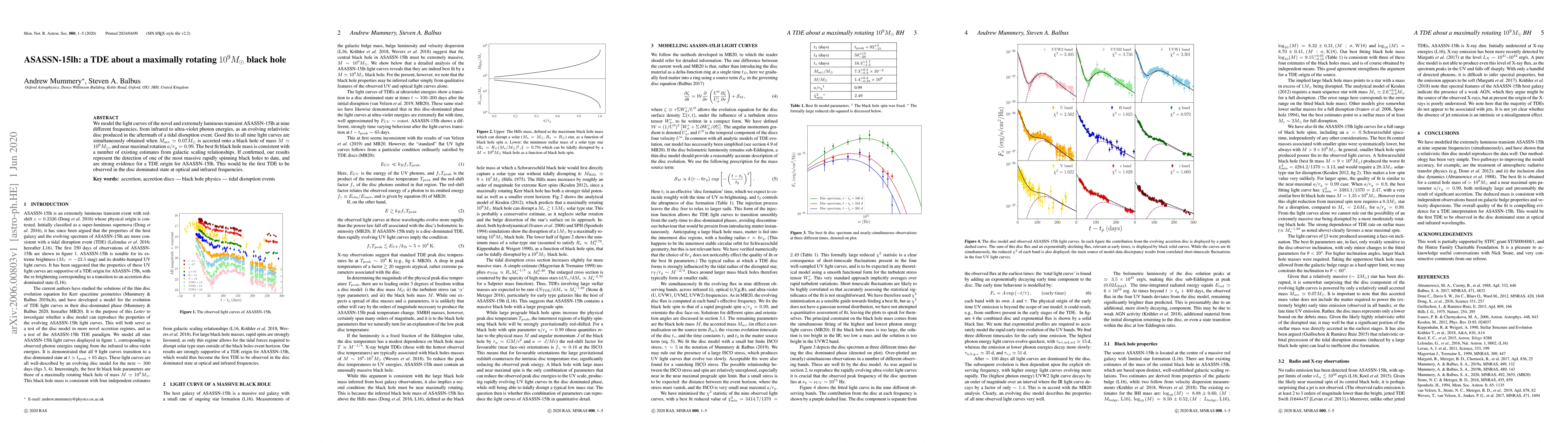 Researchers modeled ASASSN-15lh as a Tidal Disruption Event (TDE) occurring around a massive black hole with a mass of $10^9 M_{ullet}$, discovering it to be one of the most massive rapidly spinning black holes detected to date.