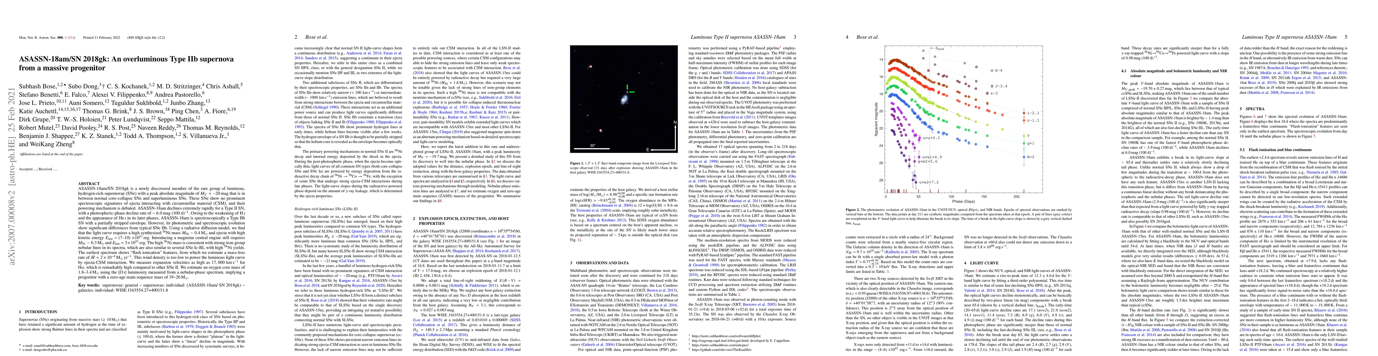 This Type IIb supernova, ASASSN-18am/SN 2018gk, has a high synthesised 56Ni mass of around 0.4 Mó and high kinetic energy, suggesting either a strong iron-group nebular line origin or a magnetar central engine.