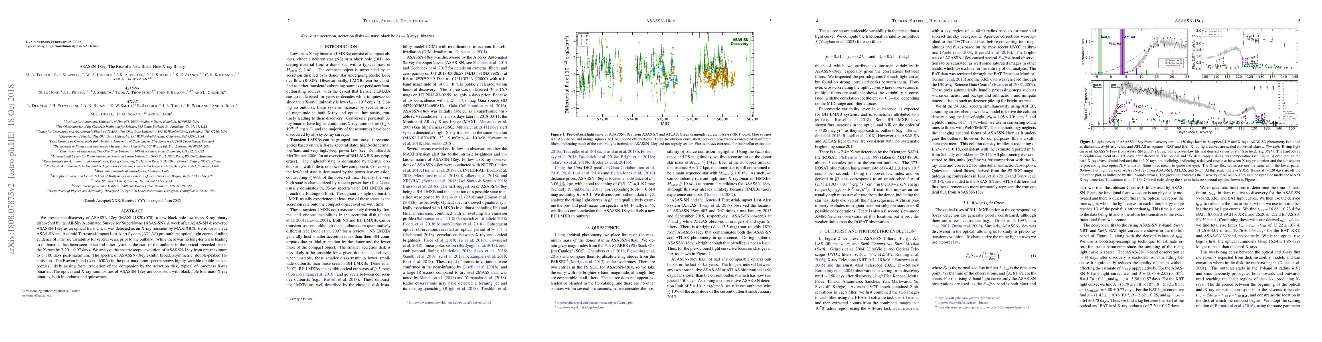 ASASSN-18ey (MAXI J1820+070) is a newly discovered black hole low-mass X-ray binary, identified as an optical transient followed by an X-ray transient. The optical outburst preceded the X-ray outburst by 7.2 days, and spectroscopic analysis reveals characteristics typical of such binaries, including double-peaked H$\alpha$ emission and variable Bowen blend profiles.