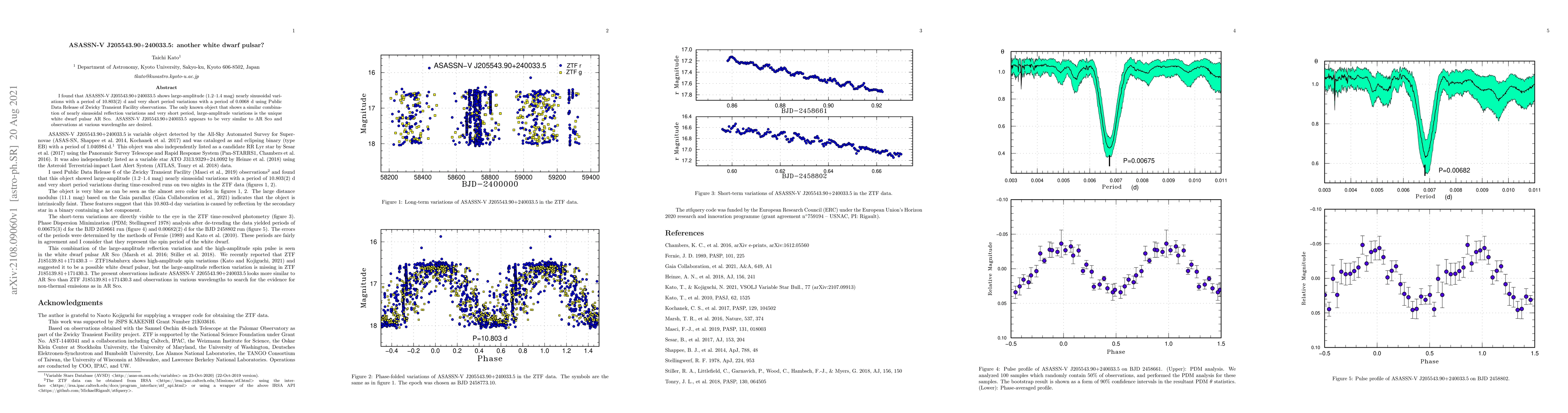 ASASSN-V J205543.90+240033.5 exhibits large-amplitude, periodic variations similar to the white dwarf pulsar AR Sco, suggesting it may be another such object; further multi-wavelength observations are recommended for confirmation.