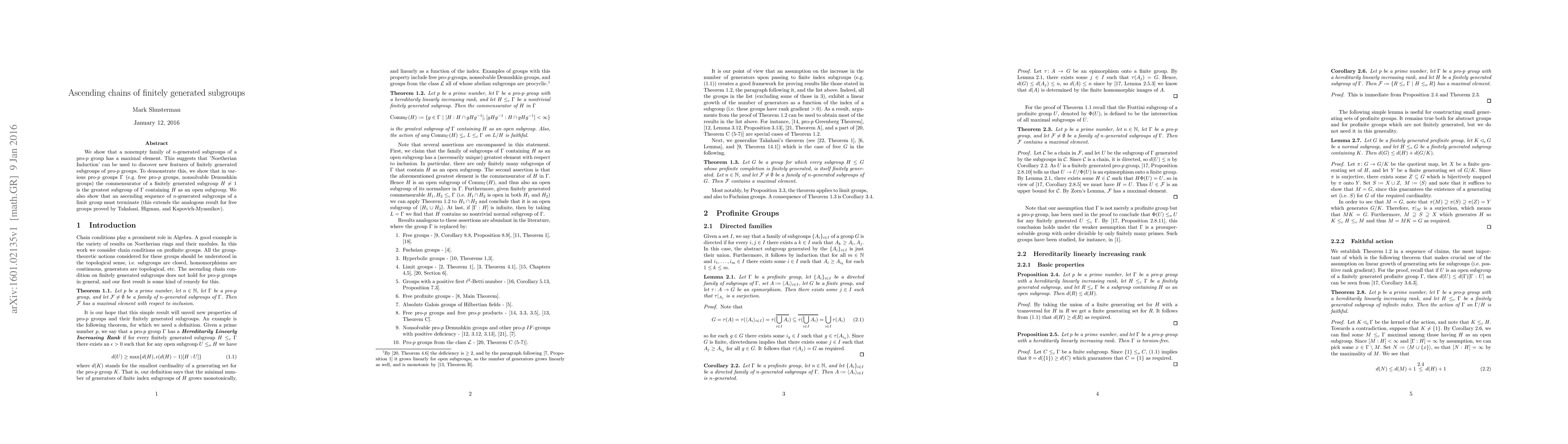 We show that a nonempty family of $n$-generated subgroups of a pro-$p$ group has a maximal element. This suggests that 'Noetherian Induction' can be used to discover new features of finitely generated subgroups of pro-$p$ groups. To demonstrate this, we show that in various pro-$p$ groups $\Gamma$ (e.g. free pro-$p$ groups, nonsolvable Demushkin groups) the commensurator of a finitely generated subgroup $H \neq 1$ is the greatest subgroup of $\Gamma$ containing $H$ as an open subgroup. We also show that an ascending sequence of $n$-generated subgroups of a limit group must terminate (this extends the analogous result for free groups proved by Takahasi, Higman, and Kapovich-Myasnikov).