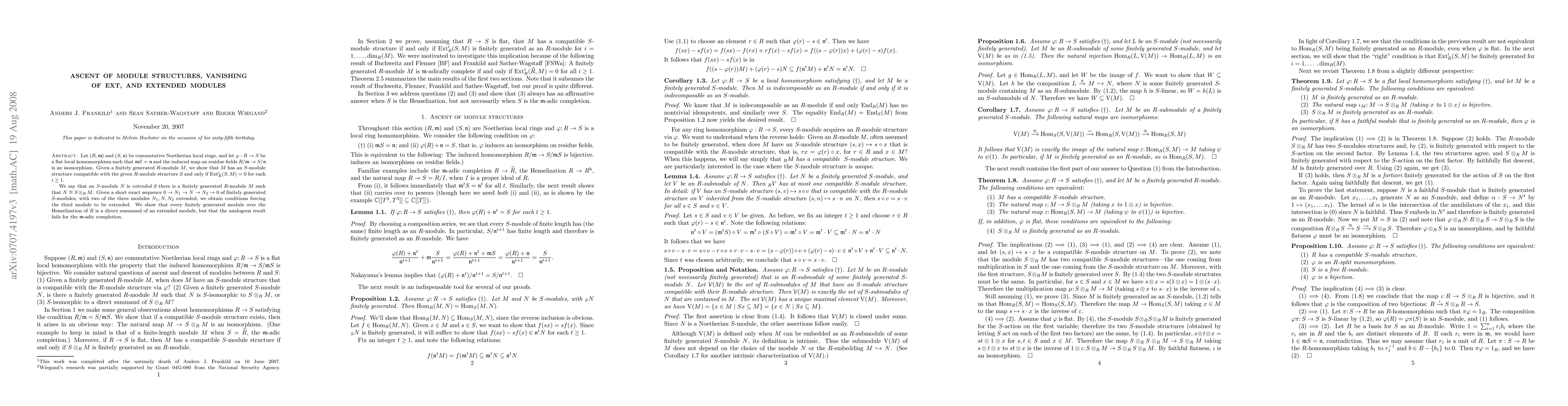 A flat local homomorphism between Noetherian local rings preserves module structure if and only if Ext groups vanish, enabling the construction of extended modules with specific properties.
