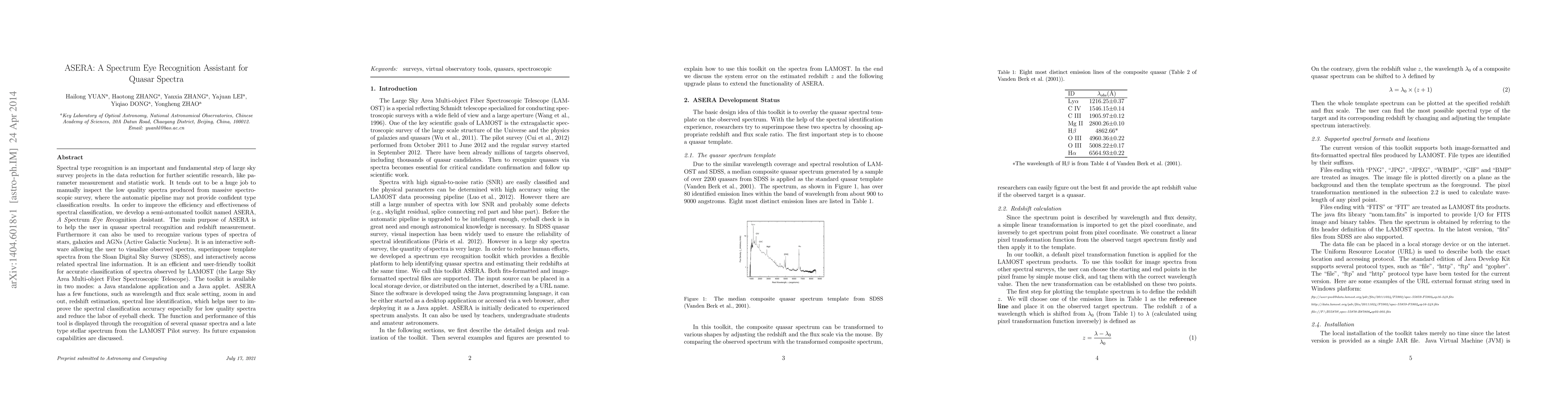 Researchers developed ASERA, a semi-automated toolkit for recognizing quasar spectra, to improve efficiency and accuracy in spectral classification.