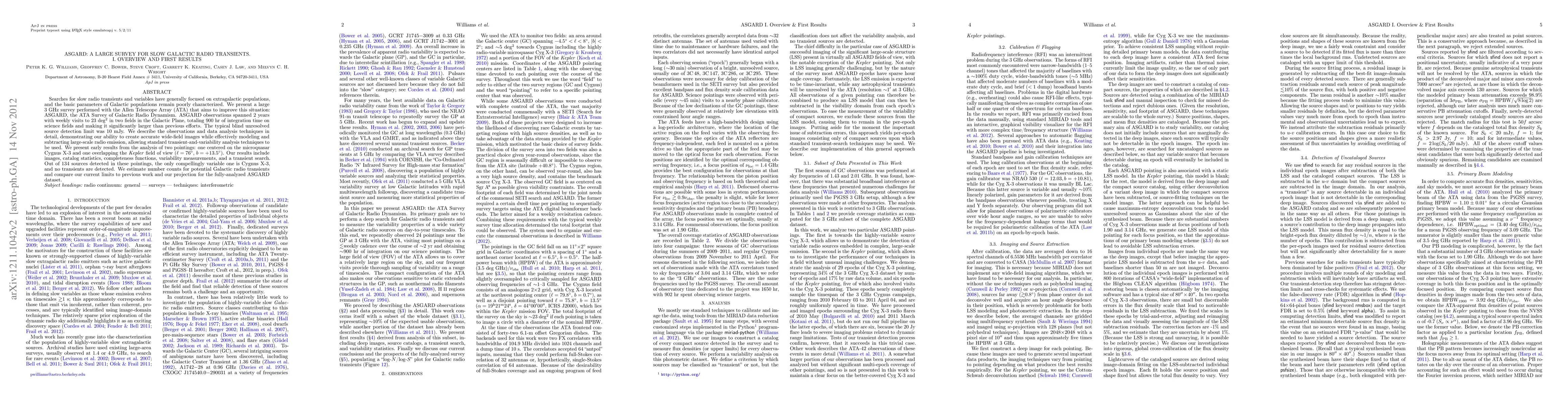 The ASGARD survey, conducted using the Allen Telescope Array, aims to characterize Galactic slow radio transients through a large 3 GHz survey spanning 2 years. Initial results from two fields show no transients detected, with Cygnus X-3 being the only variable source, highlighting the survey's potential to improve understanding of Galactic radio dynamism.