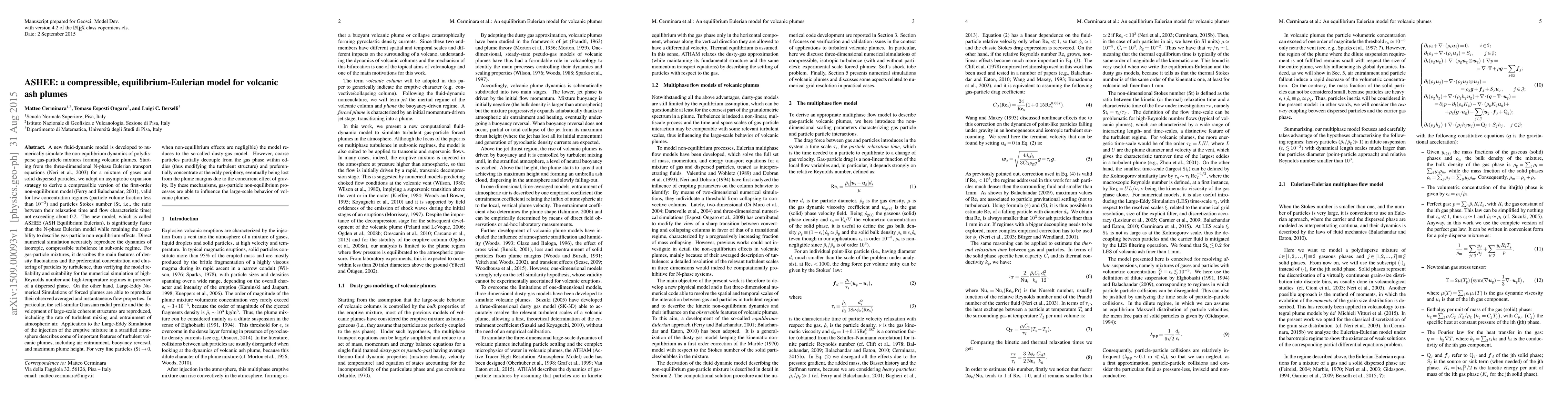 The paper introduces ASHEE, a compressible, equilibrium-Eulerian model for simulating volcanic ash plumes, which efficiently captures gas-particle non-equilibrium dynamics in polydisperse mixtures. The model accurately reproduces turbulence, particle concentration, and large-scale plume behavior, including entrainment, buoyancy reversal, and plume height.