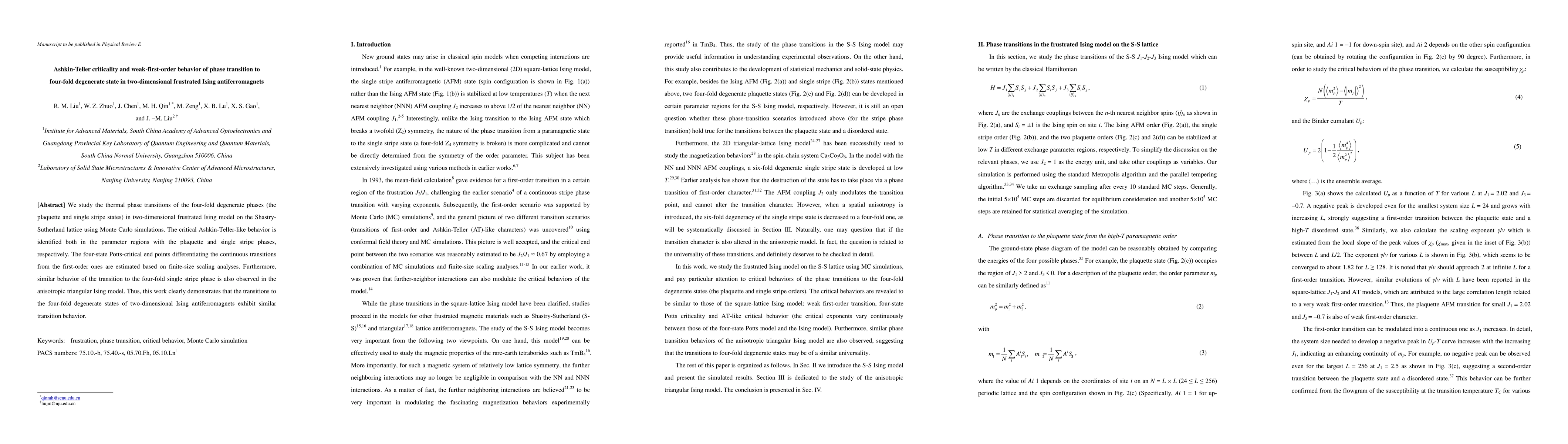 This paper investigates the thermal phase transitions in two-dimensional frustrated Ising antiferromagnets using Monte Carlo simulations, identifying Ashkin-Teller-like critical behavior in both plaquette and single stripe phases. It estimates four-state Potts-critical end points for distinguishing continuous from first-order transitions and observes similar transition behavior in the anisotropic triangular Ising model.