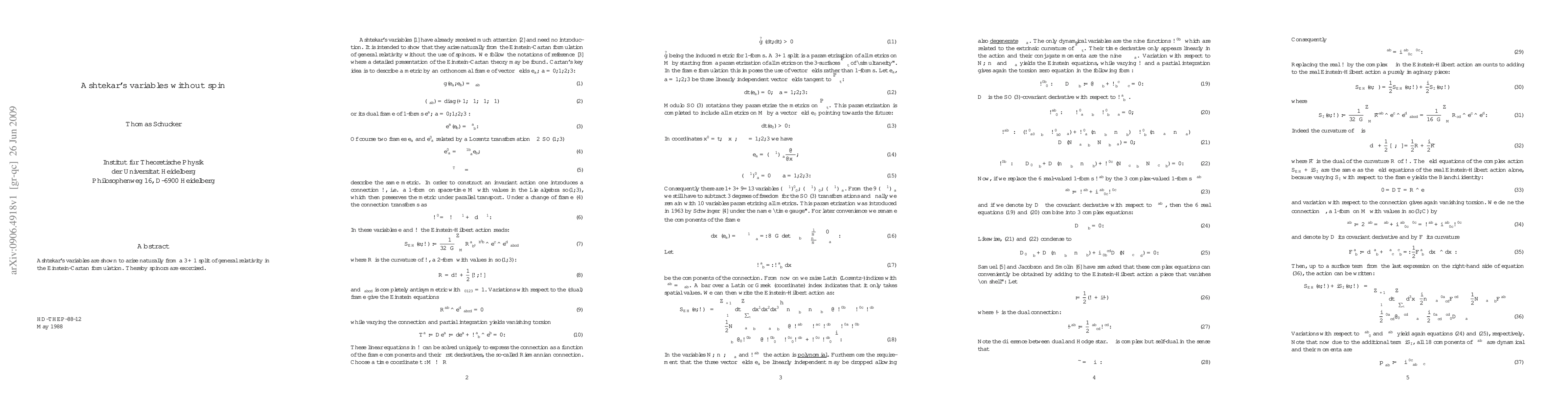 Summary: This paper demonstrates that Ashtekar's variables emerge from a 3+1 decomposition of general relativity in the Einstein-Cartan framework, effectively eliminating the need for spinors.