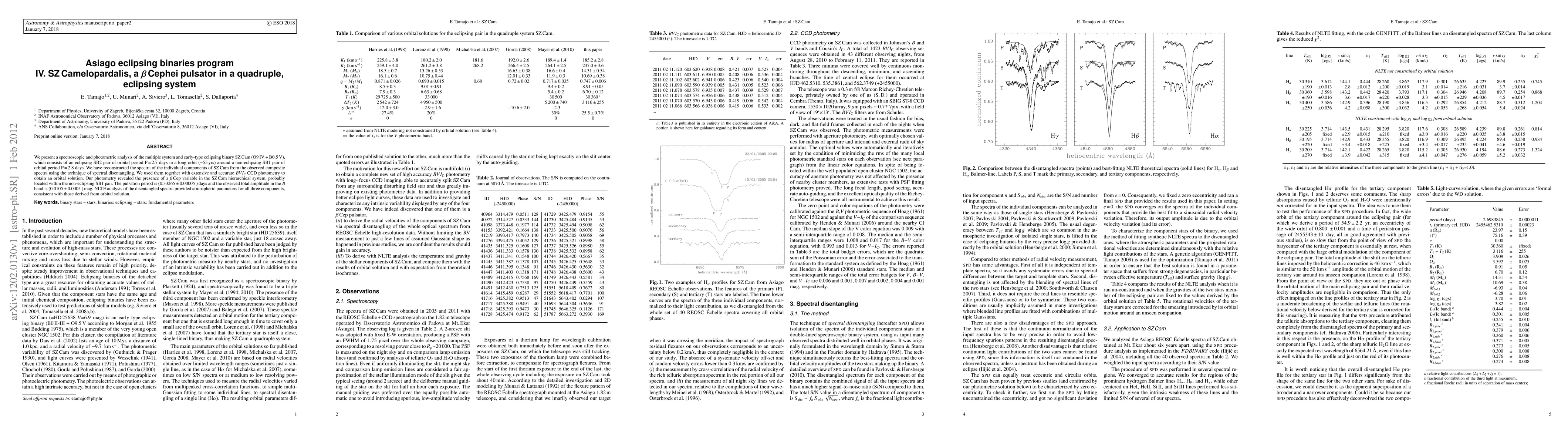 This paper analyzes the multiple star system SZ Camelopardalis, revealing a beta Cephei pulsator in an eclipsing binary with an O9IV star and a B0.5V star. Spectral disentangling and extensive photometry identified a pulsation period of 0.33265 days and provided atmospheric parameters for all components.