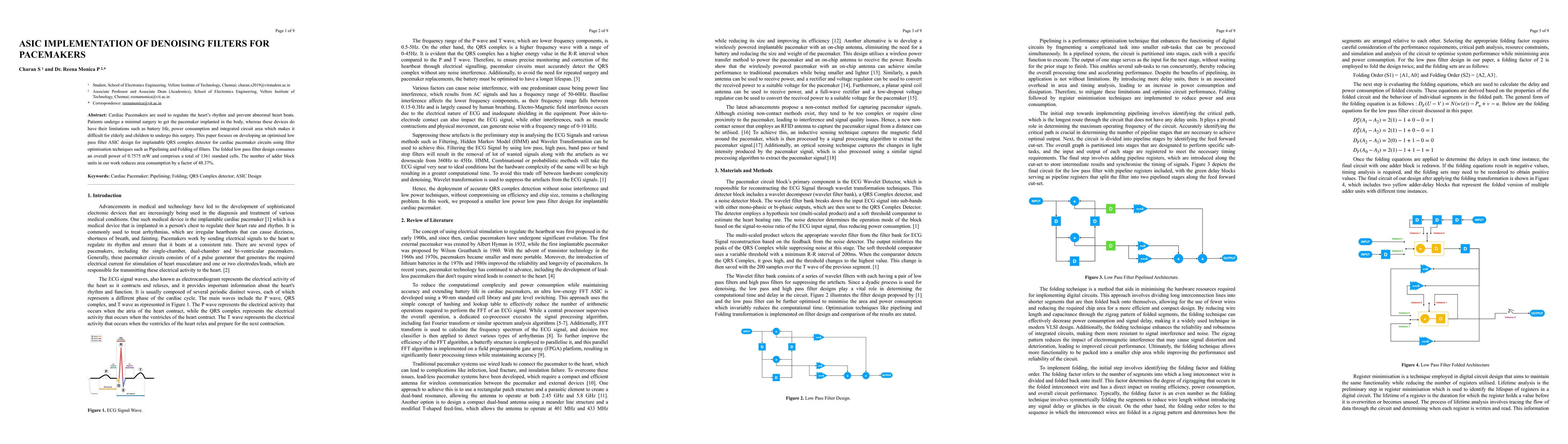 This paper presents an optimized ASIC design for a low pass filter in pacemaker circuits, utilizing pipelining and folding techniques to enhance efficiency. The resulting folded filter design reduces power consumption to 0.7575 mW and significantly decreases area usage by 48.37%.