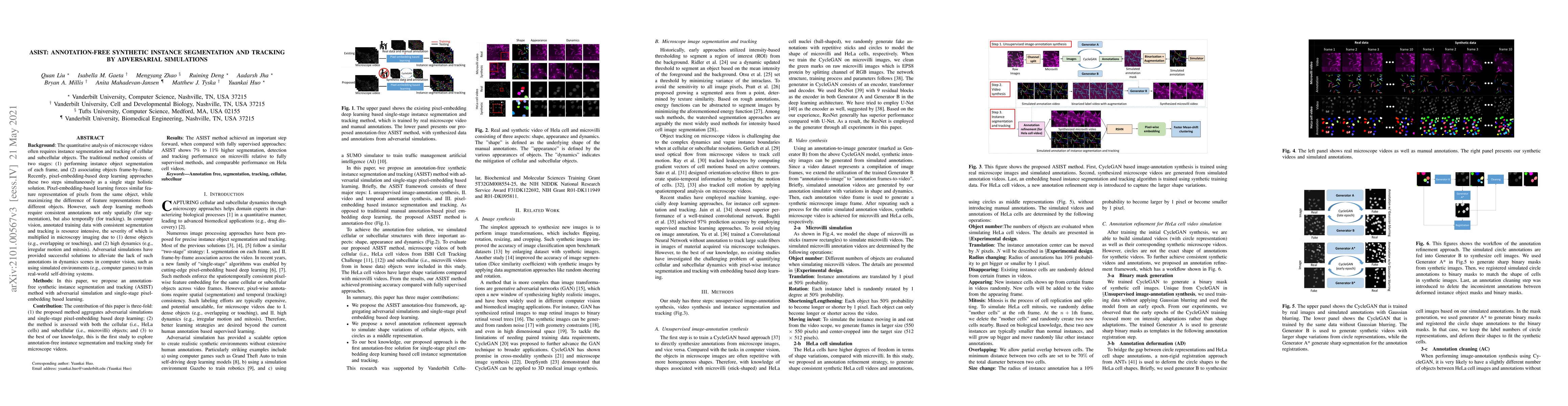 The paper proposes ASIST, an annotation-free synthetic instance segmentation and tracking method using adversarial simulations and single-stage pixel-embedding based learning. It involves unsupervised image-annotation synthesis, video synthesis, and instance segmentation and tracking.