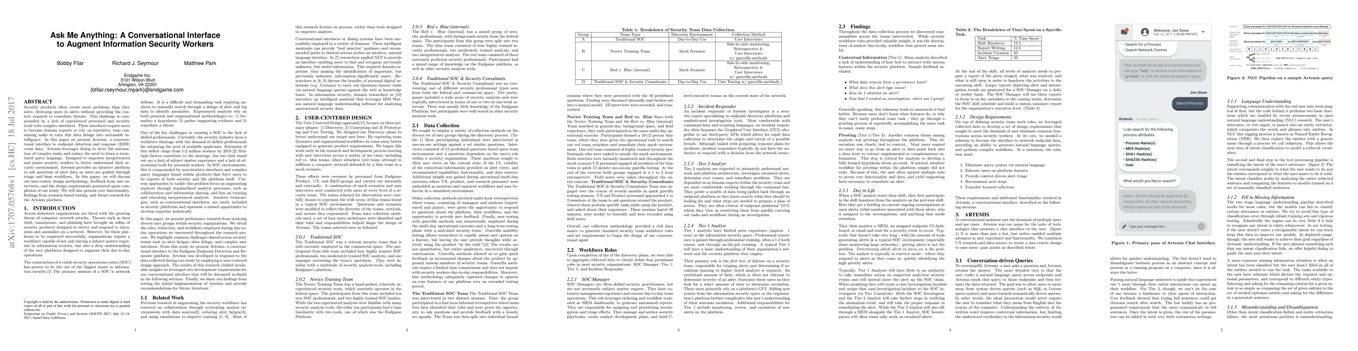 A conversational interface called Artemis helps inexperienced security workers analyze complex alert data without needing to learn specialized language. It automates tasks and provides an intuitive platform for users to ask questions and gain actionable insights.