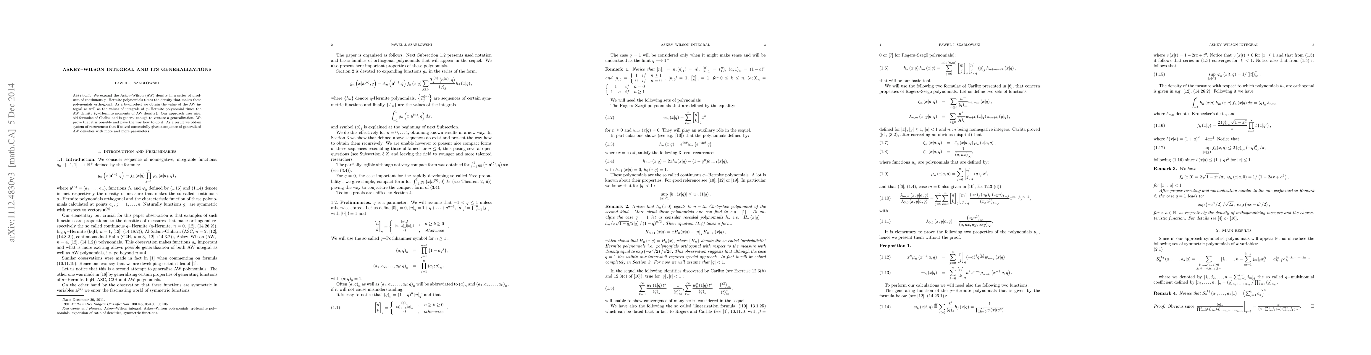 We expand the Askey--Wilson (AW) density in a series of products of continuous $q-$Hermite polynomials times the density that makes these polynomials orthogonal. As a by-product we obtain the value of the AW integral as well as the values of integrals of $q-$Hermite polynomial times the AW density ($q-$Hermite moments of AW density). Our approach uses nice, old formulae of Carlitz and is general enough to venture a generalization. We prove that it is possible and pave the way how to do it. As a result we obtain system of recurrences that if solved successfully gives a sequence of generalized AW densities with more and more parameters.