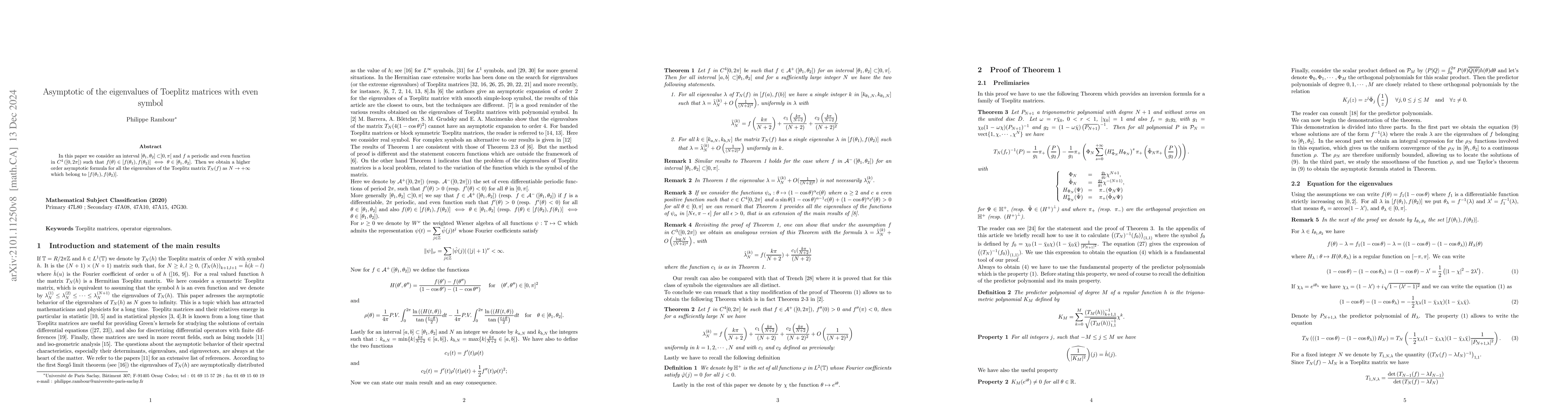 This paper derives a higher-order asymptotic formula for the eigenvalues of Toeplitz matrices with an even, differentiable, and periodic function symbol within a specified interval. It also discusses three consequences related to the eigenvalue distribution of Toeplitz matrices with trigonometric symbols.
