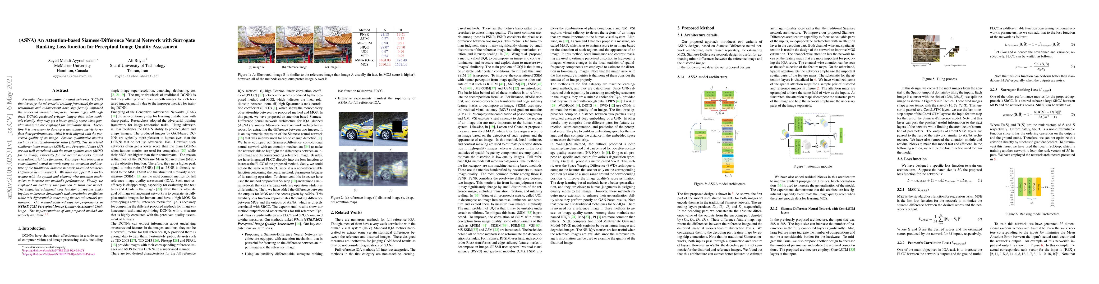 This paper proposes an attention-based Siamese-Difference neural network with a surrogate ranking loss function for perceptual image quality assessment, achieving superior performance in the NTIRE 2021 challenge. The method incorporates spatial and channel-wise attention mechanisms to enhance performance and uses a differentiable surrogate ranking loss to better correlate with human perception.