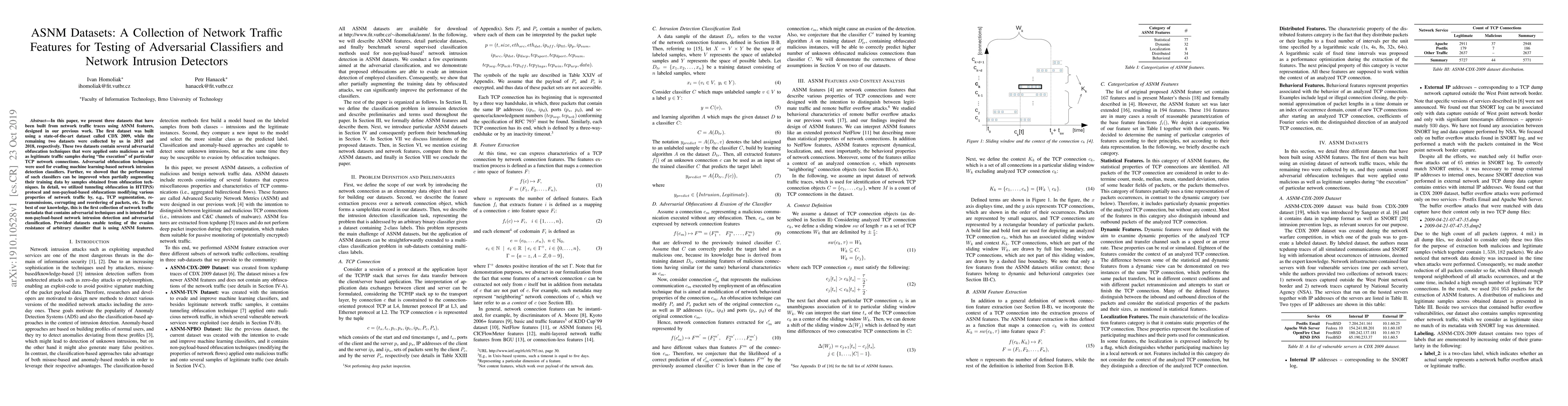 The paper introduces three network traffic datasets featuring ASNM-derived features, including adversarial obfuscation techniques to test machine learning-based classifiers and network intrusion detectors. These datasets aim to enhance classifier performance through obfuscation-augmented training data.
