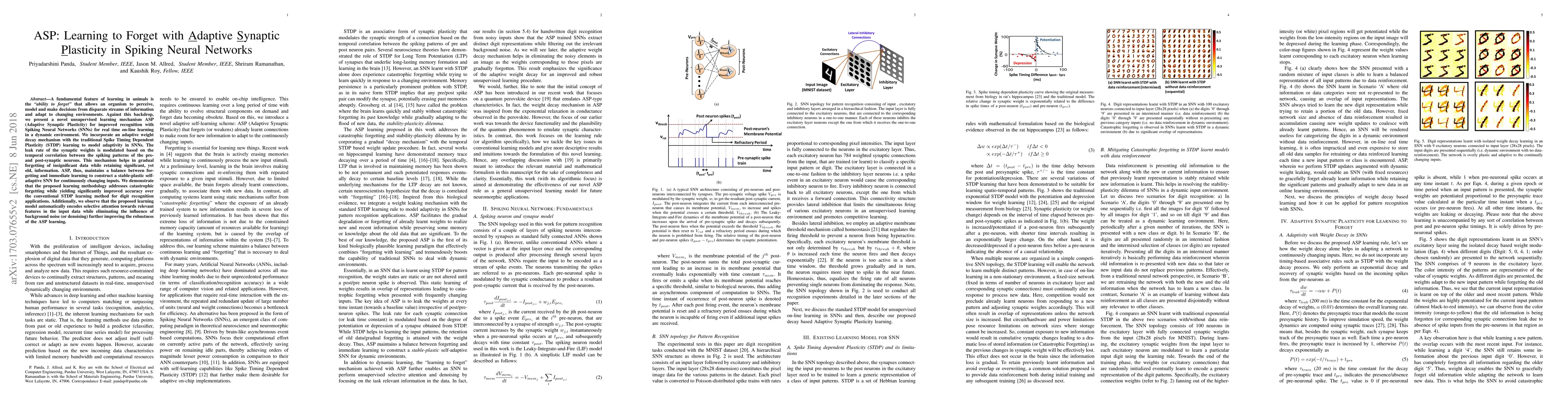 The paper introduces ASP (Adaptive Synaptic Plasticity), an unsupervised learning mechanism for Spiking Neural Networks (SNNs) that incorporates an adaptive weight decay to model adaptivity, addressing catastrophic forgetting and improving recognition accuracy. ASP modulates synaptic weight decay based on temporal correlations, enabling gradual forgetting of irrelevant data while retaining important information, thus enhancing the robustness and adaptability of SNNs.
