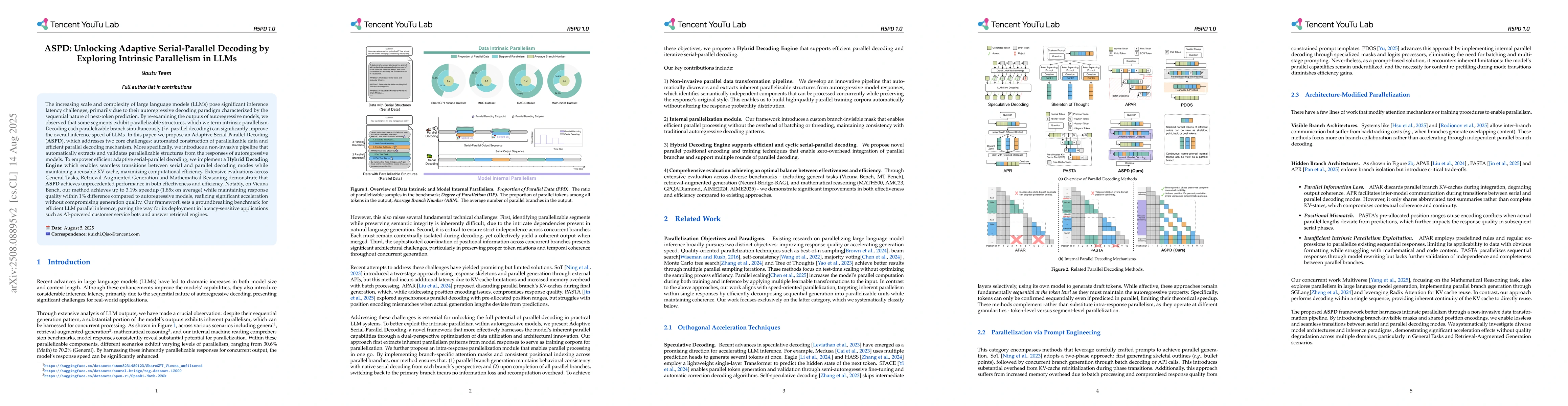 The increasing scale and complexity of large language models (LLMs) pose significant inference latency challenges, primarily due to their autoregressive decoding paradigm characterized by the sequential nature of next-token prediction. By re-examining the outputs of autoregressive models, we observed that some segments exhibit parallelizable structures, which we term intrinsic parallelism. Decoding each parallelizable branch simultaneously (i.e. parallel decoding) can significantly improve the overall inference speed of LLMs. In this paper, we propose an Adaptive Serial-Parallel Decoding (ASPD), which addresses two core challenges: automated construction of parallelizable data and efficient parallel decoding mechanism. More specifically, we introduce a non-invasive pipeline that automatically extracts and validates parallelizable structures from the responses of autoregressive models. To empower efficient adaptive serial-parallel decoding, we implement a Hybrid Decoding Engine which enables seamless transitions between serial and parallel decoding modes while maintaining a reusable KV cache, maximizing computational efficiency. Extensive evaluations across General Tasks, Retrieval-Augmented Generation, Mathematical Reasoning, demonstrate that ASPD achieves unprecedented performance in both effectiveness and efficiency. Notably, on Vicuna Bench, our method achieves up to 3.19x speedup (1.85x on average) while maintaining response quality within 1% difference compared to autoregressive models, realizing significant acceleration without compromising generation quality. Our framework sets a groundbreaking benchmark for efficient LLM parallel inference, paving the way for its deployment in latency-sensitive applications such as AI-powered customer service bots and answer retrieval engines.