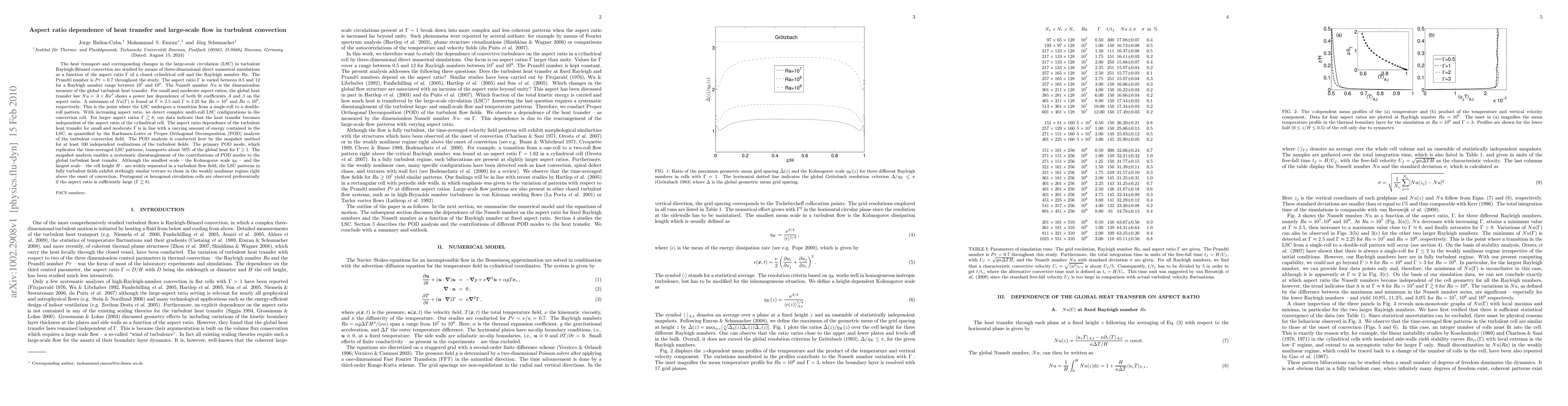 This study investigates the relationship between aspect ratio and heat transfer in turbulent Rayleigh-Bénard convection through direct numerical simulations. The research finds that for small to moderate aspect ratios, the heat transfer and large-scale flow patterns depend on the aspect ratio, while for larger aspect ratios, heat transfer becomes independent of it.