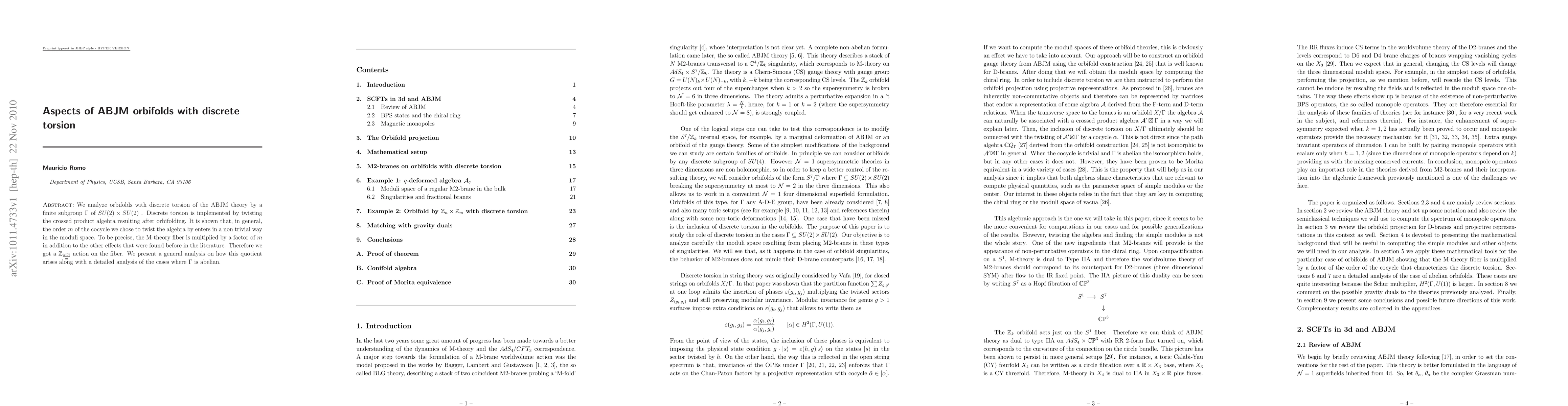 This paper investigates the impact of discrete torsion on ABJM theory orbifolds via a finite subgroup of $SU(2)\times SU(2)$, revealing that the twisting order $m$ significantly affects the moduli space and multiplies the M-theory fiber by $m$. It discusses a $\mathbb{Z}_{\frac{k|\Gamma|}{m}}$ action on the fiber and provides a detailed analysis for abelian $\Gamma$.