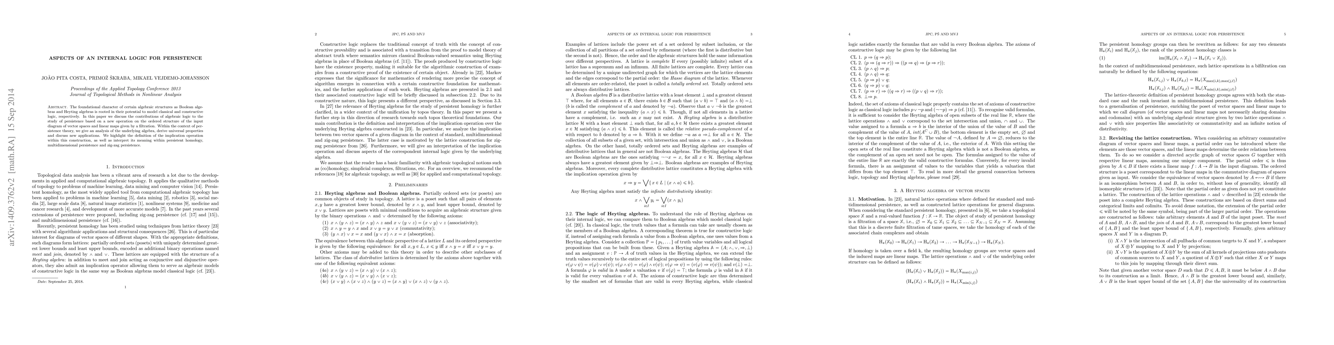 The foundational character of certain algebraic structures as Boolean algebras and Heyting algebras is rooted in their potential to model classical and constructive logic, respectively. In this paper we discuss the contributions of algebraic logic to the study of persistence based on a new operation on the ordered structure of the input diagram of vector spaces and linear maps given by a filtration. Within the context of persistence theory, we give an analysis of the underlying algebra, derive universal properties and discuss new applications. We highlight the definition of the implication operation within this construction, as well as interpret its meaning within persistent homology, multidimensional persistence and zig-zag persistence.