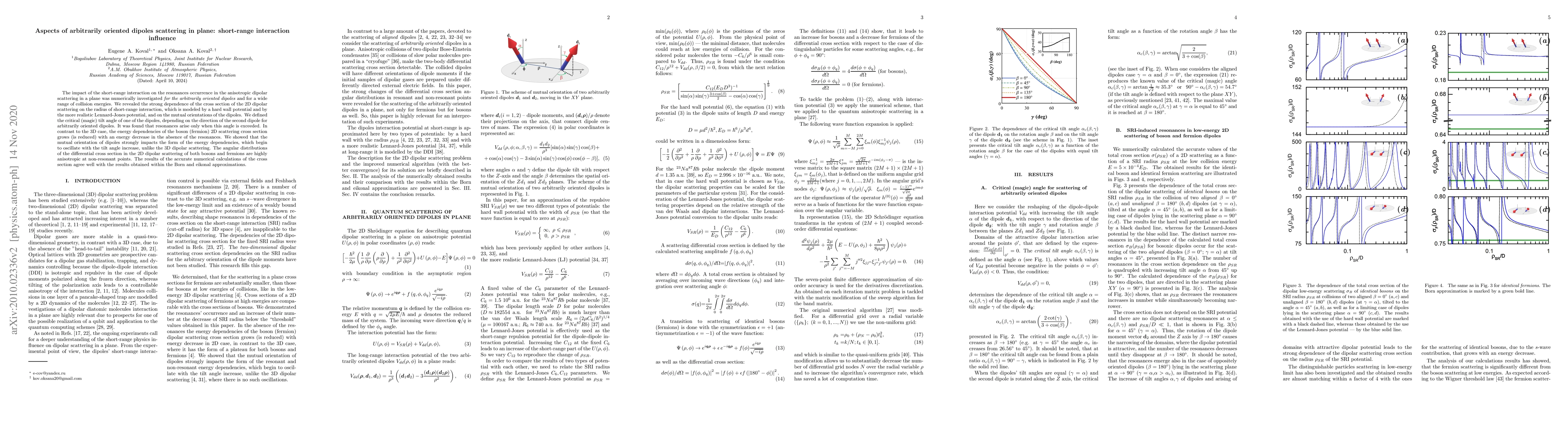 The paper presents detailed numerical calculations of dipolar scattering cross sections, comparing them with Born and eikonal approximations, and introduces the concept of critical tilt angle for resonance occurrence.