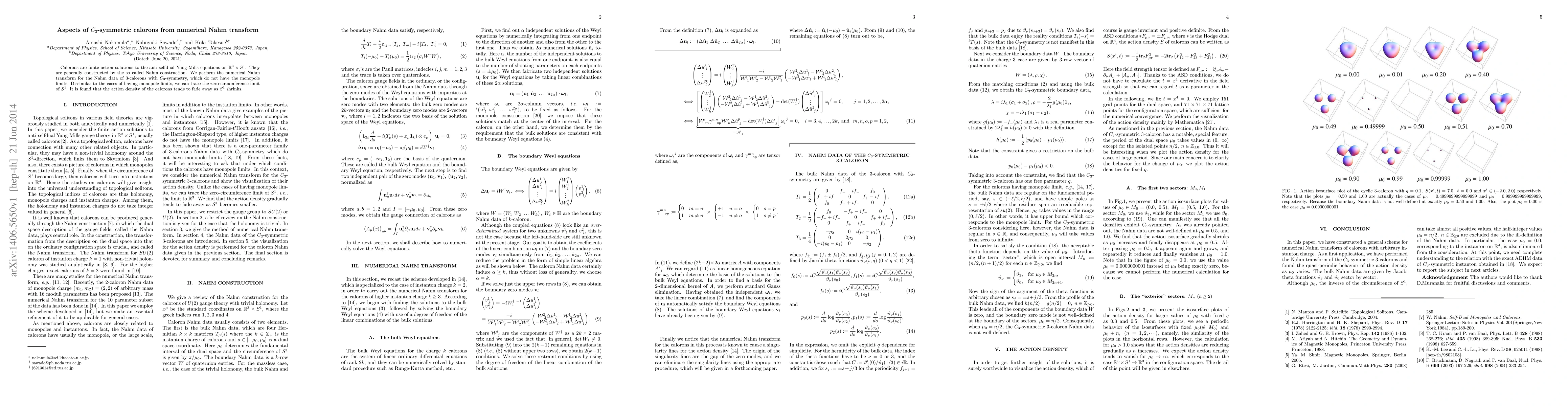 This paper investigates $C_3$-symmetric calorons via the numerical Nahm transform, revealing that their action density diminishes as the $S^1$ component shrinks, contrasting cases with monopole limits.