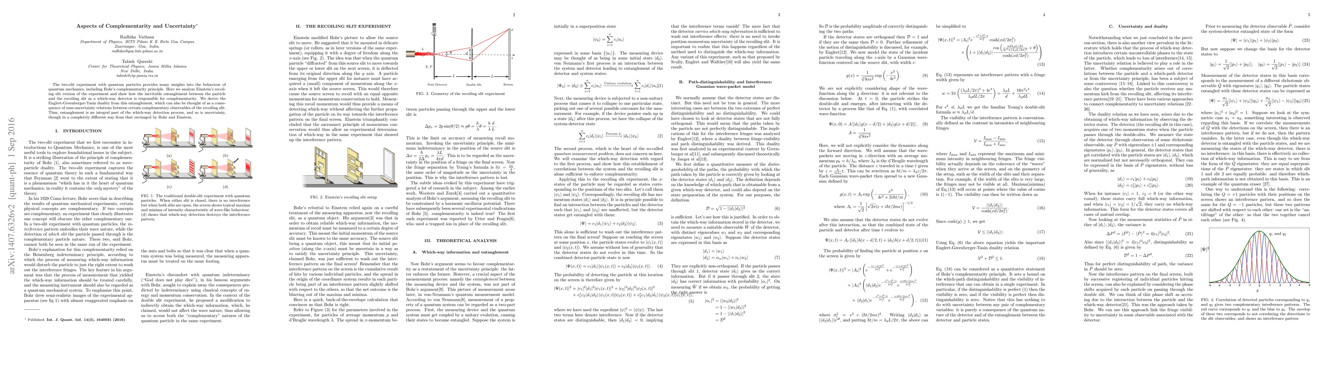 This paper explores the entanglement between quantum particles and recoiling slits in the two-slit experiment, revealing how this entanglement underpins Bohr's complementarity principle and derives the Englert-Greenberger-Yasin duality, illustrating a novel perspective on uncertainty in quantum mechanics.