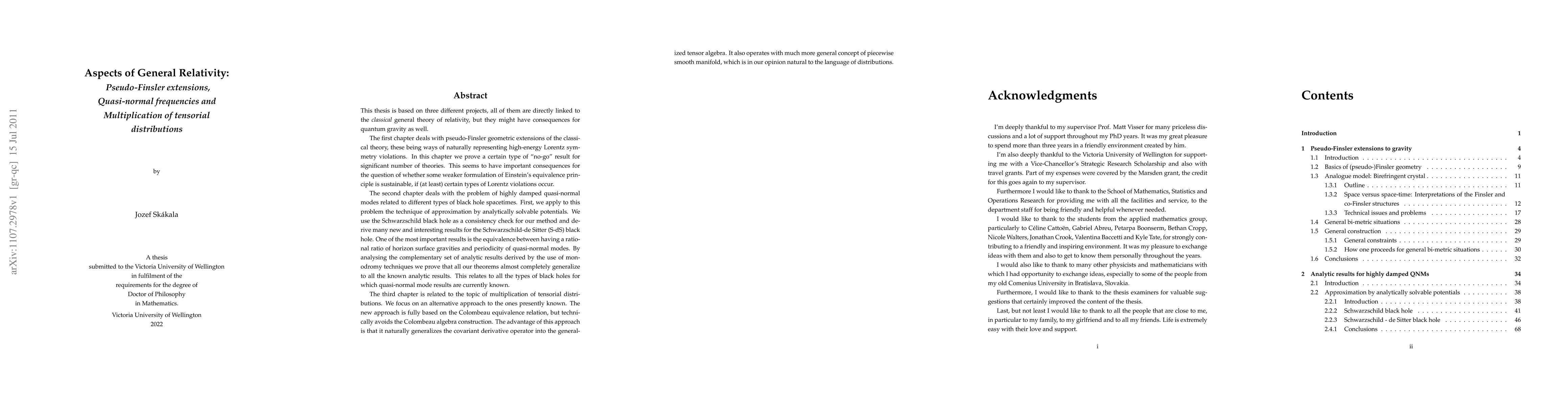 This thesis is based on three different projects, all of them are directly linked to the classical general theory of relativity, but they might have consequences for quantum gravity as well. The first chapter deals with pseudo-Finsler geometric extensions of the classical theory, these being ways of naturally representing high-energy Lorentz symmetry violations. The second chapter deals with the problem of highly damped quasi-normal modes related to different types of black hole spacetimes. Besides the astrophysical meaning of the quasi-normal modes, there are conjectures about the link between the highly damped modes and black hole thermodynamics. The third chapter is related to the topic of multiplication of tensorial distributions.