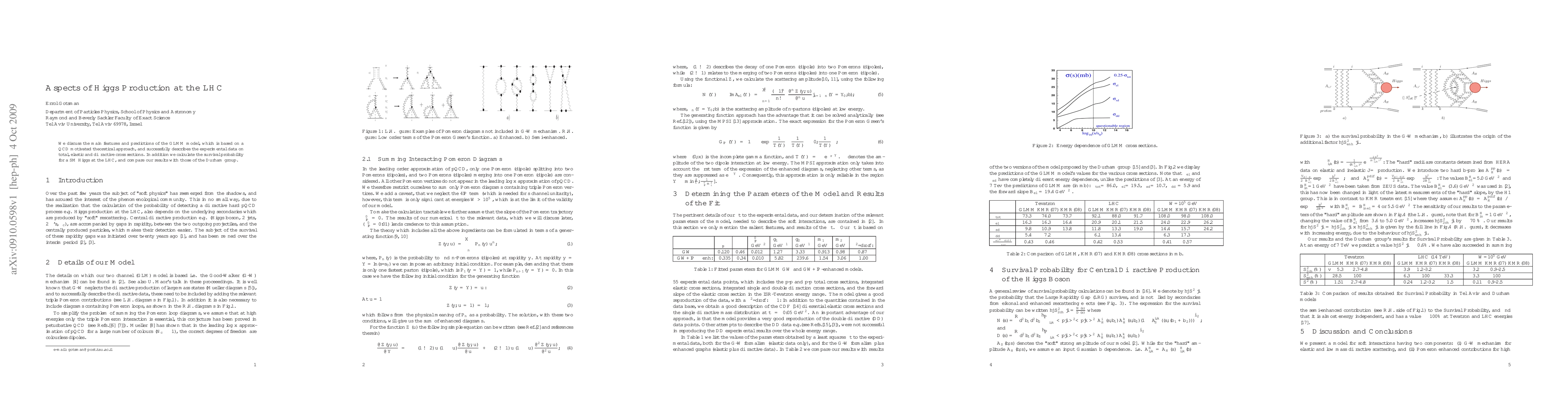 We discuss the main features and predictions of the GLMM model, which is based on a QCD motivated theoretical approach, and successfully describes the experimental data on total, elastic and diffractive cross sections. In addition we calculate the survival probability for a SM Higgs at the LHC, and compare our results with those of the Durham group.