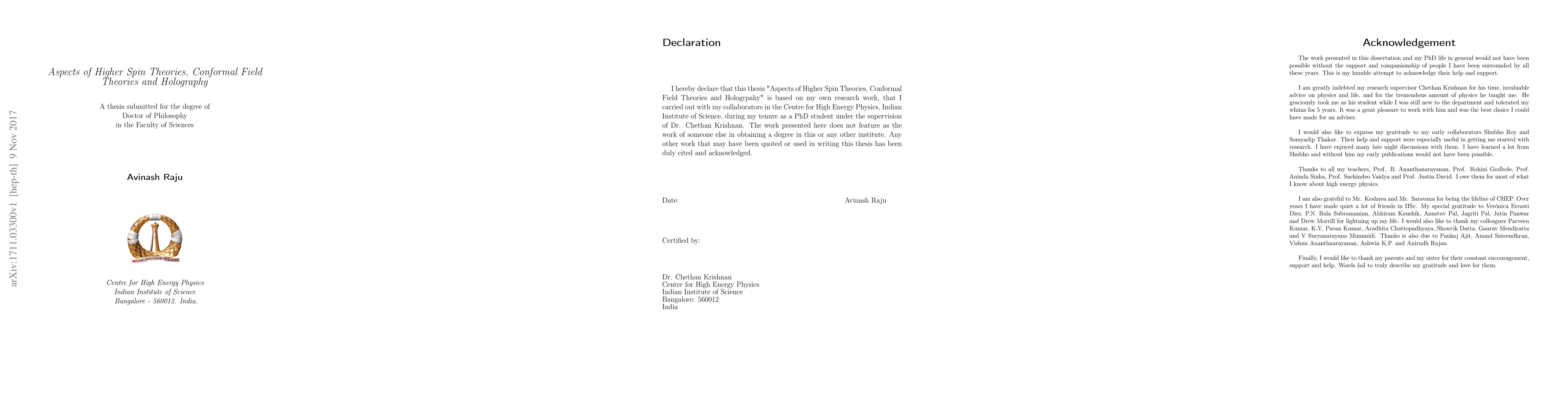 This dissertation explores gravity and higher spin theories in 2+1 dimensions, addressing cosmological solutions of spin-3 gravity and their thermodynamics. It also investigates the well-posedness of Neumann boundary conditions in Einstein's gravity and employs conformal field theory techniques to compute anomalous dimensions in the O(N) Gross-Neveu model.