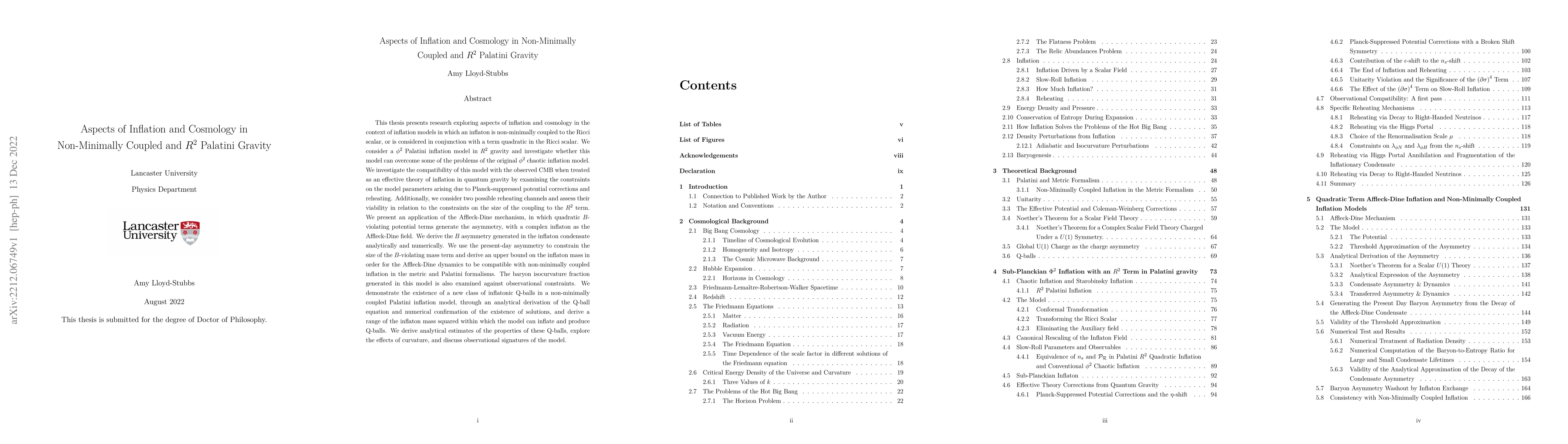 This thesis investigates non-minimally coupled inflation models in $R^{2}$ Palatini gravity, exploring their compatibility with observed CMB data and the generation of $B$-asymmetry through the Affleck-Dine mechanism. It also identifies new inflatonic Q-balls and their observational signatures.