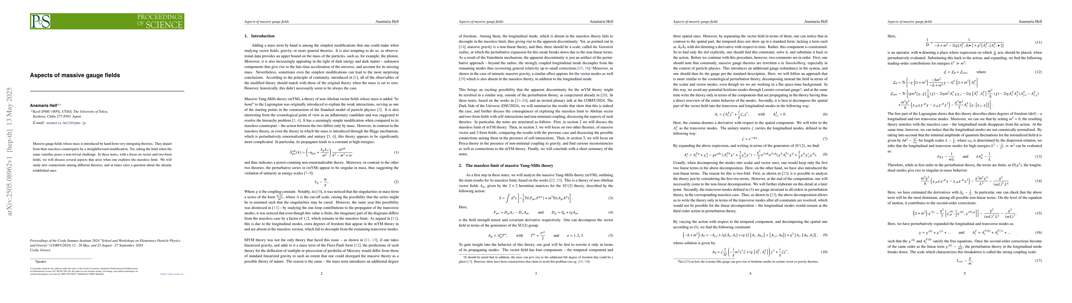 The paper discusses aspects of massive gauge fields, focusing on vector and two-form fields, and explores the challenges in taking the massless limit.