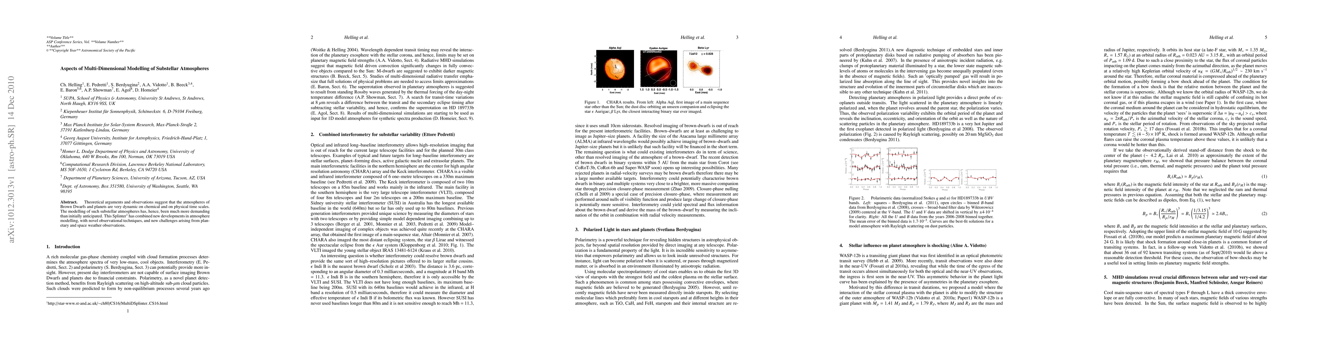 Theoretical arguments and observations suggest that the atmospheres of Brown Dwarfs and planets are very dynamic on chemical and on physical time scales. The modelling of such substellar atmospheres has, hence, been much more demanding than initially anticipated. This Splinter (http://star-www.st-and.ac.uk/~ch80/CS16/MultiDSplinter_CS16.html) has combined new developments in atmosphere modelling, with novel observational techniques, and new challenges arising from planetary and space weather observations.
