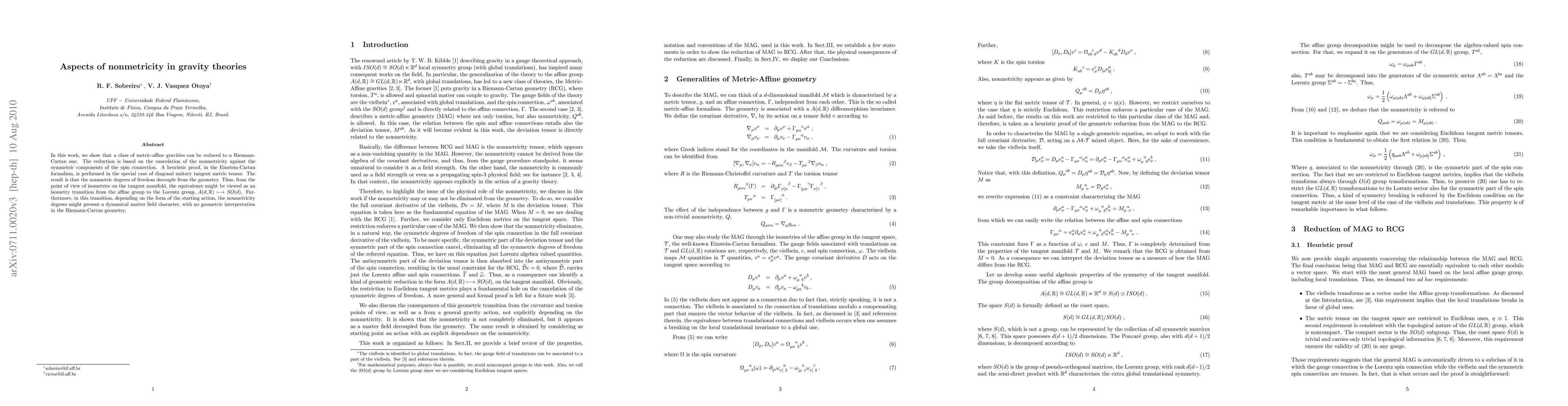 In this work, we show that a class of metric-affine gravities can be reduced to a Riemann-Cartan one. The reduction is based on the cancelation of the nonmetricity against the symmetric components of the spin connection. A heuristic proof, in the Einstein-Cartan formalism, is performed in the special case of diagonal unitary tangent metric tensor. The result is that the nonmetric degrees of freedom decouple from the geometry. Thus, from the point of view of isometries on the tangent manifold, the equivalence might be viewed as an isometry transition from the affine group to the Lorentz group, $A(d,\mathbb{R})\longmapsto SO(d)$. Furthermore, in this transition, depending on the form of the starting action, the nonmetricity degrees might present a dynamical matter field character, with no geometric interpretation in the Riemann-Cartan geometry.