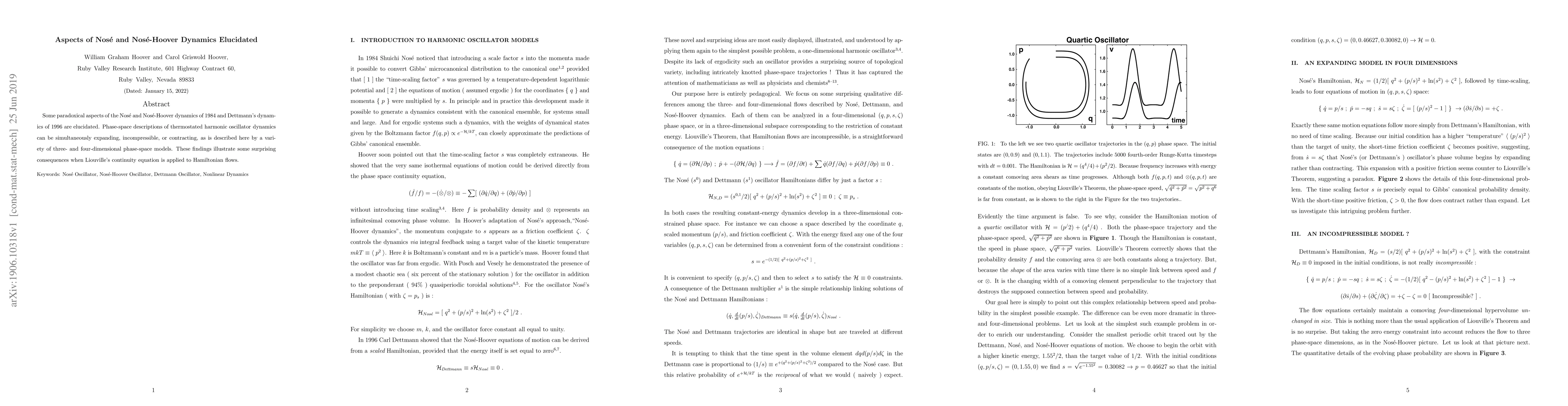 This paper elucidates paradoxical aspects of Nos\'e and Nos\'e-Hoover dynamics, revealing that thermostated harmonic oscillator dynamics can exhibit simultaneous expansion, incompressibility, or contraction in phase space, challenging traditional interpretations of Liouville's continuity equation in Hamiltonian flows.