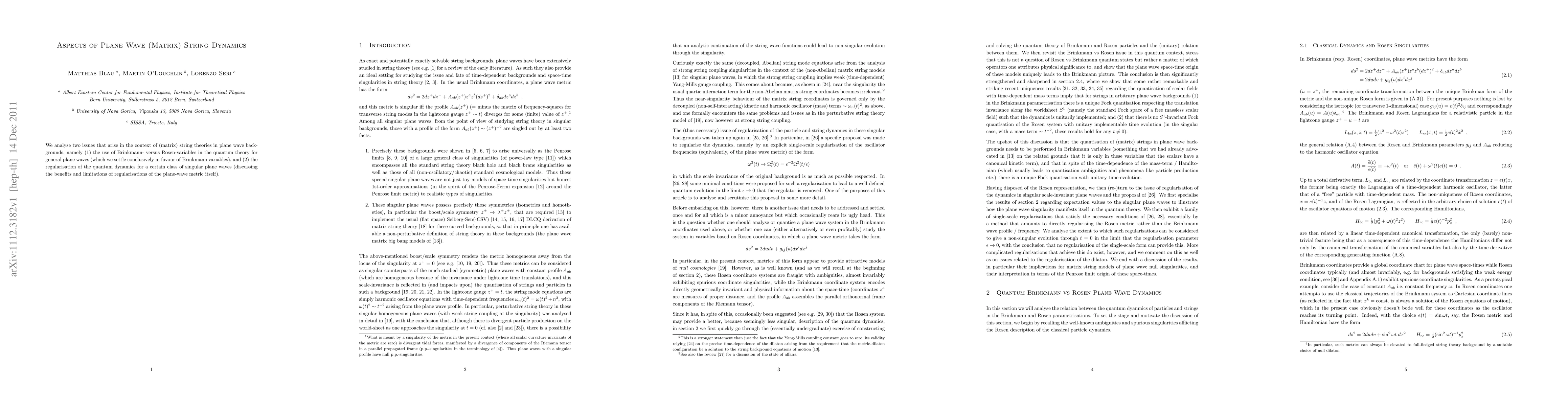 We analyse two issues that arise in the context of (matrix) string theories in plane wave backgrounds, namely (1) the use of Brinkmann- versus Rosen-variables in the quantum theory for general plane waves (which we settle conclusively in favour of Brinkmann variables), and (2) the regularisation of the quantum dynamics for a certain class of singular plane waves (discussing the benefits and limitations of regularisations of the plane-wave metric itself).