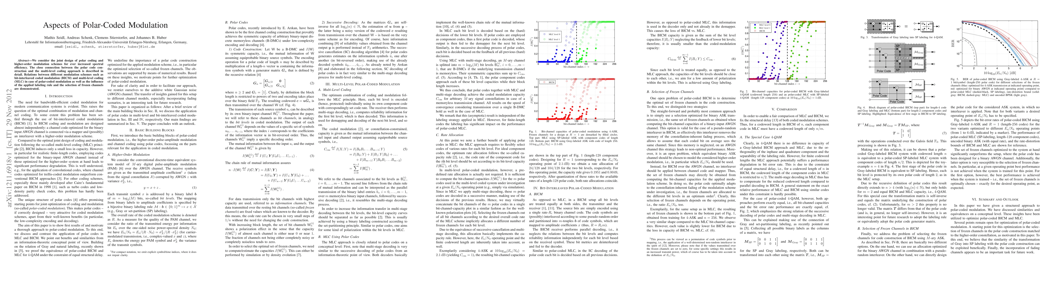 This paper explores the integration of polar coding with higher-order modulation techniques to enhance spectral efficiency. It details the relationship between polar code construction and multi-level coding, and examines the impact of labeling rules and frozen channel selection on polar-coded modulation performance.