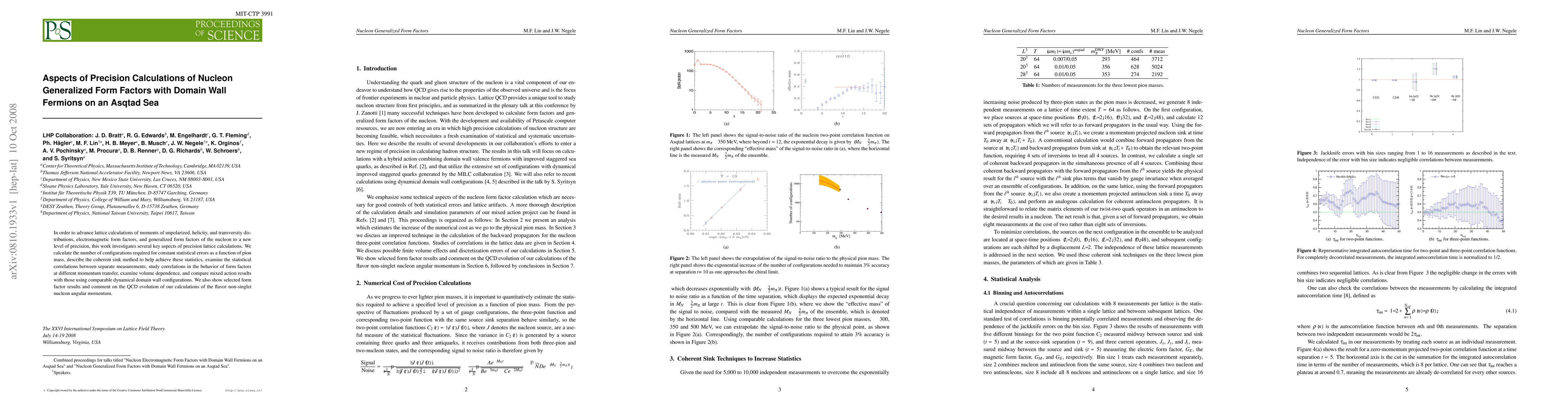 In order to advance lattice calculations of moments of unpolarized, helicity, and transversity distributions, electromagnetic form factors, and generalized form factors of the nucleon to a new level of precision, this work investigates several key aspects of precision lattice calculations. We calculate the number of configurations required for constant statistical errors as a function of pion mass, describe the coherent sink method to help achieve these statistics, examine the statistical correlations between separate measurements, study correlations in the behavior of form factors at different momentum transfer, examine volume dependence, and compare mixed action results with those using comparable dynamical domain wall configurations. We also show selected form factor results and comment on the QCD evolution of our calculations of the flavor non-singlet nucleon angular momentum.