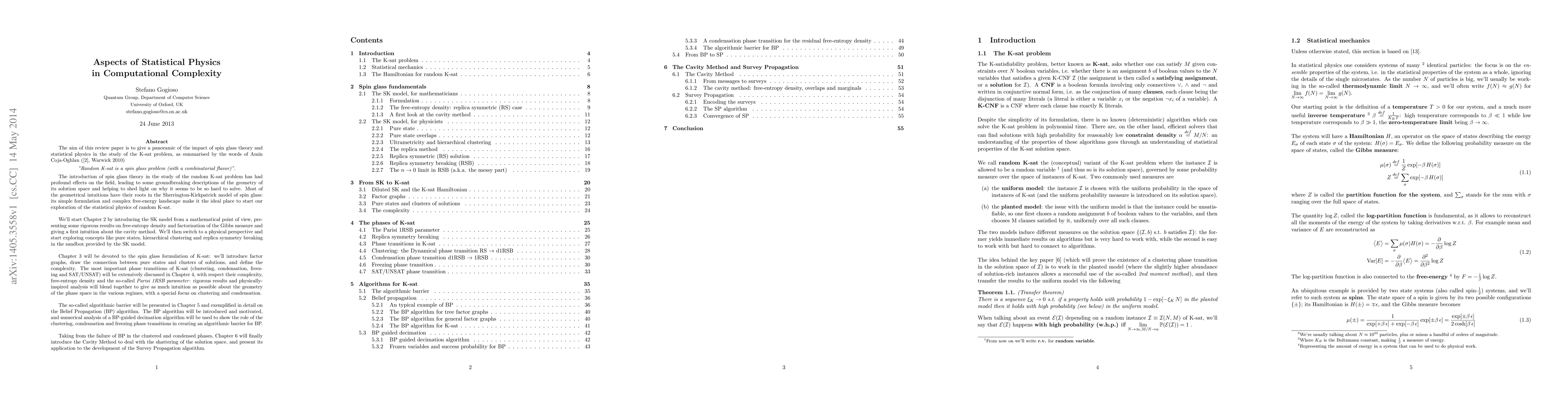 This review paper explores the influence of spin glass theory and statistical physics on computational complexity, particularly in the K-sat problem, using the geometrical intuitions from the Sherrington-Kirkpatrick model. It examines the algorithmic barriers and phase transitions, such as clustering and freezing, that hinder efficient solutions, and introduces the Cavity Method and Survey Propagation to address these challenges.
