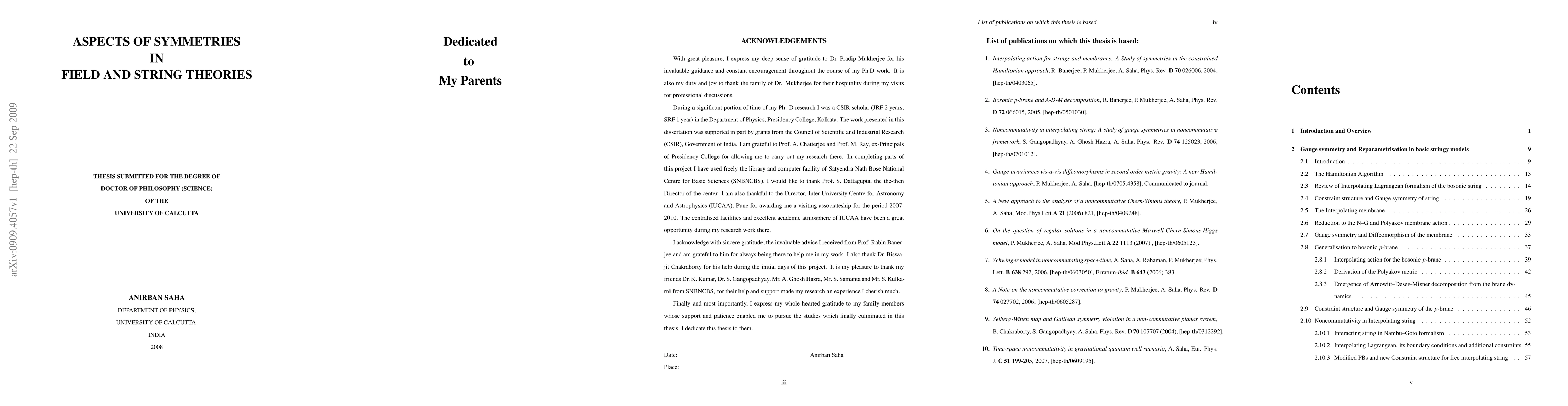 The focus of the present thesis is on the analysis of gauge symmetry and its various impacts on gauge theories. In the first part of this thesis, we have studied different aspects of symmetries in connection with various field and string theoretic models. The manifestations of gauge symmetries and their interconnection with the diffeomorphism invariances have been discussed in the context of different generally covariant models like string, membrane, $p-$brane and metric gravity. Analysis of interacting string with proper inclusion of the stringy boundary conditions led to the noncommutative nature of the string coordinates. In the second part of the thesis the emphasis was primarily on the impact of gauge symmetries on the field theories defined over noncommutative space-time. The correspondence between the NC gauge symmetry and ordinary gauge symmetry manifest by Seiberg--Witten maps between the NC gauge fields and ordinary gauge fields have been used to construct equivalent commutative theories describing the original NC gauge theories. Using this commutative equivalent approach we have analysed several NC gauge field theories of current interest. A upper-bound on the time-space noncommutative parameter has also been worked out.